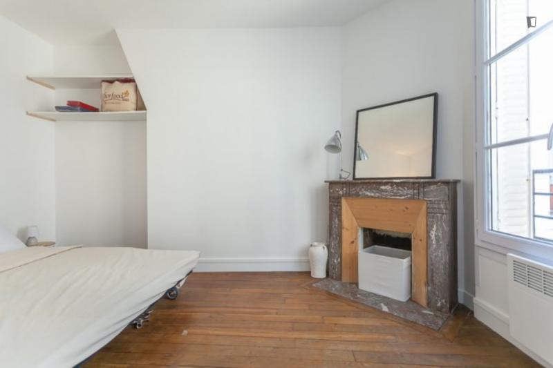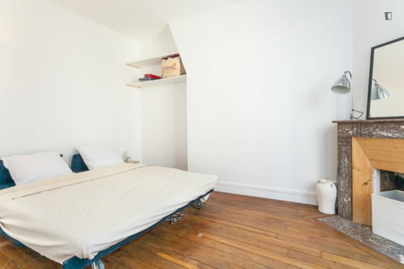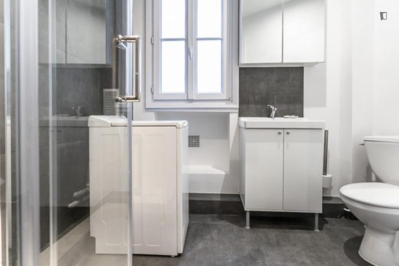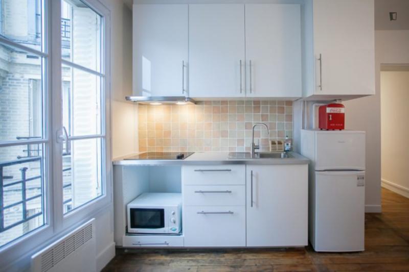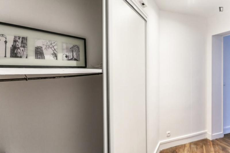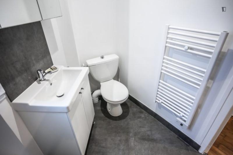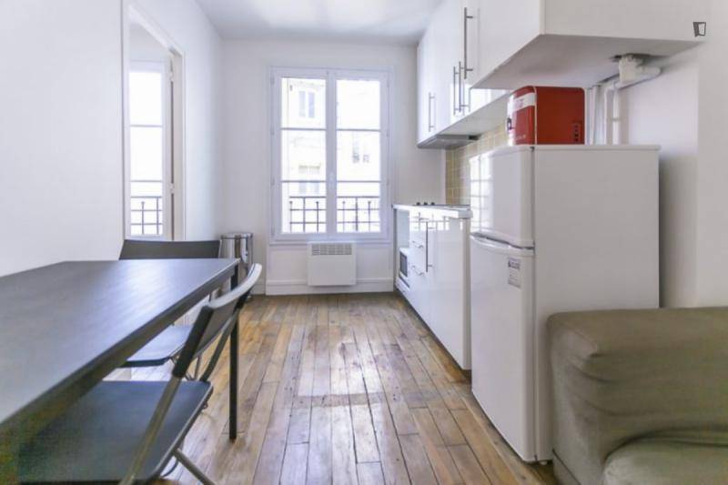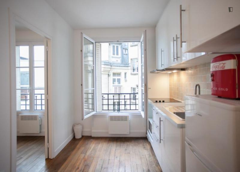 It is composed of a living room with a large dining table for 4 and an equipped brand new kitchen with stoves, microwave, large fridge and all necessary to prepare meals. The bedroom is equipped with a double bed, and the fully renewed bathroom with shower, sink, toilets and washing machine. A dressing is available in the apartement entry. Located on the 6th floor by the stair it overlooks the inside courtyard and thus offers great quietness. Linen, kitchenware and internet included. The surroundings are quiet with bakery, supermarkets and all convenient stores and restaurants / bars. Closest metro are Daumesnil or Dugommier (both on line 6) or Saint Emilion (line 14)