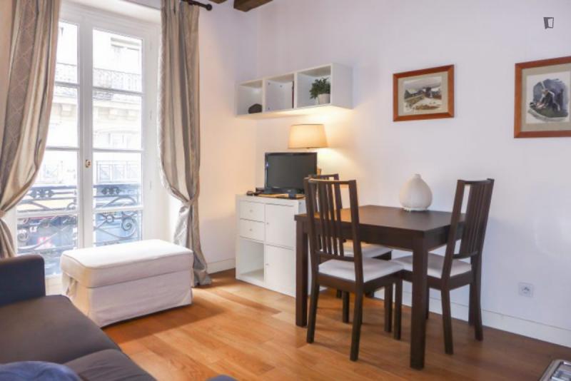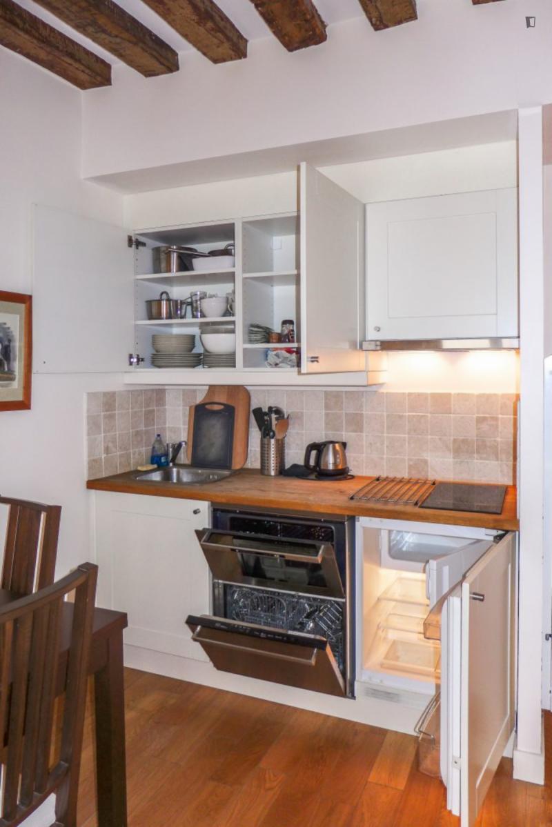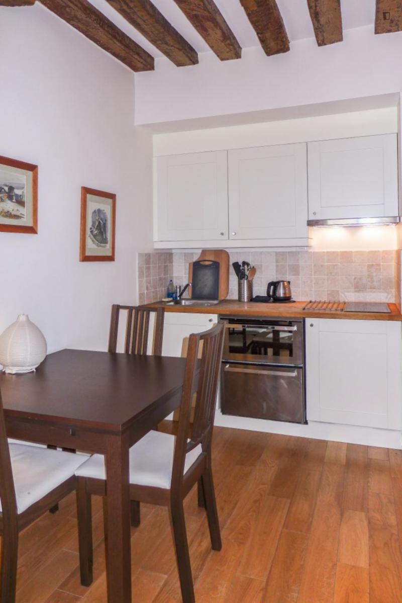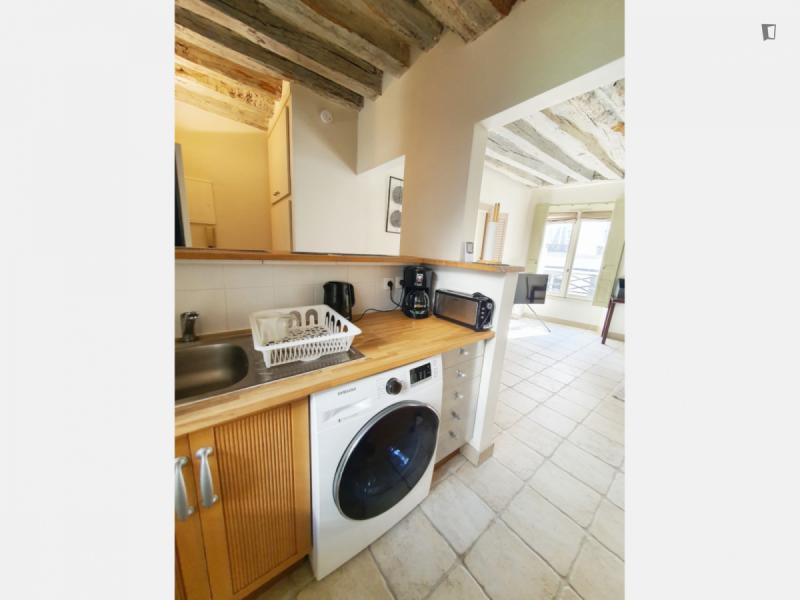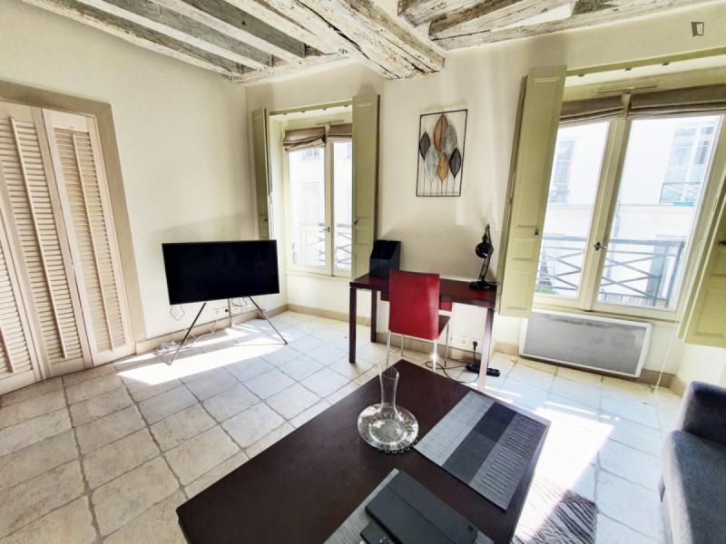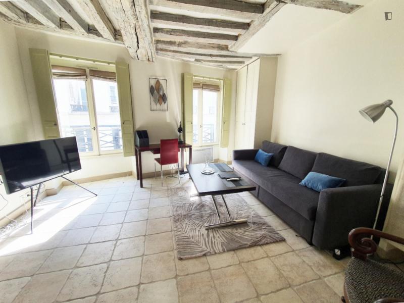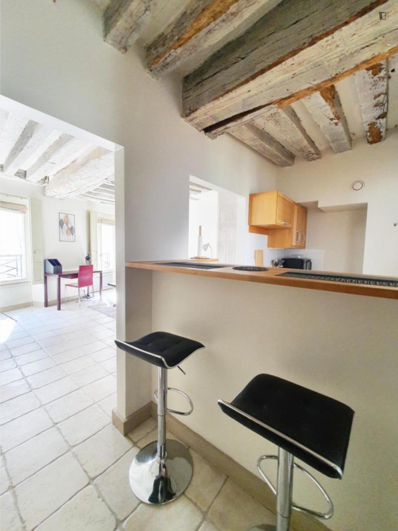 Lovely 35 Sqm apartment perfectly located in quiet Rue des Tournelles close to Place des Vosges. The historical and trendy Marais area, steps from Bastille Square. Fully furnished apartments in Paris central.