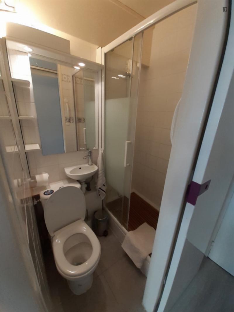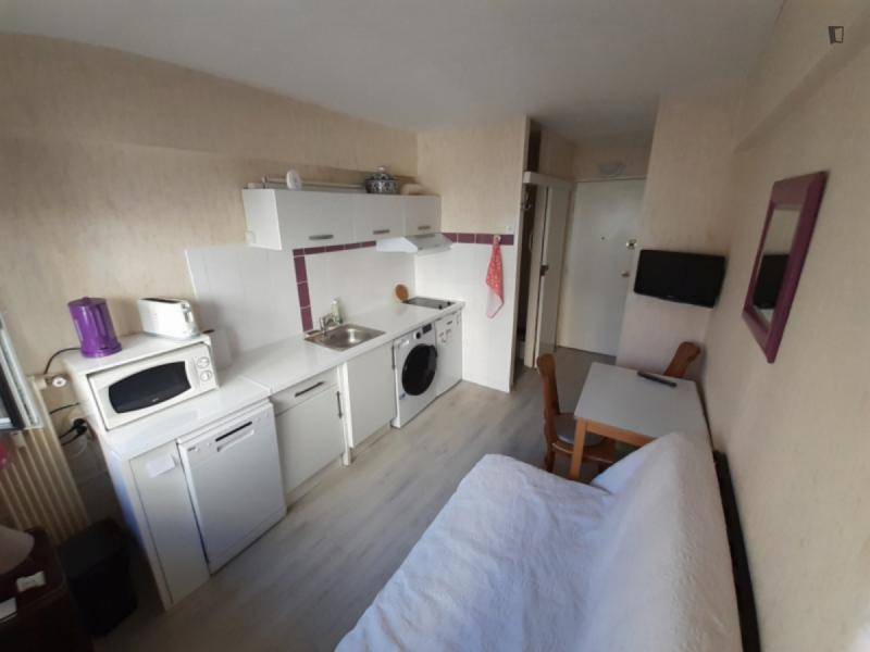 3 to 6 months rental only. No long term rental. Studio of 13m² located in the quiet and secure area of La Muette. Passy or La Muette metro station and Boulainvilliers RER station nearby. Ideal location to go to the centre of Paris. Also close to La Défense, the University of Paris Dauphine – PSL, the IUT of Paris – Rives de Seine – University of Paris, and the HEIP – Hautes Études Internationales et Politiques. You can find all the shops near the studio: Bakeries, Picard, Mc Donalds, Monoprix. The property is on the 1st floor with lift. It includes: a shower, sanibroyer toilet and sink. A WC on the landing with key access is also available. It is furnished with: a sofa bed, washing machine, dishwasher, fridge, microwave, table and chairs and all the necessary to cook. Wifi, electricity and water are included in the rent.