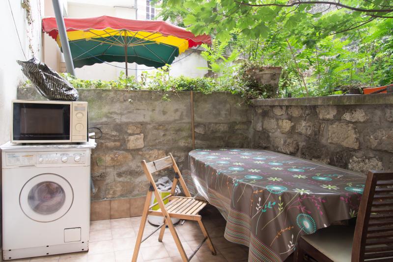 The apartment is simple, comfy and features two bedrooms, a kitchen, a bathroom, a living room and a nice courtyard with a garden where you can sit and relax with friends. Close to the flat you have the Lamarck – Caulaincourt metro station that will connect you to major points of the city!
