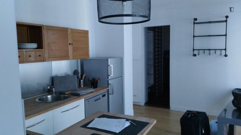 47 m² apart. is located in lively part of Paris (11th arr.). With a separate bedroom and a living room with convertible couch it can accommodate up to 4 people. Very bright 3rd floor (no elevator). It is fully equiped ready to live in (oven, gas cooking plate, washing machine, wifi, tv, sheets)