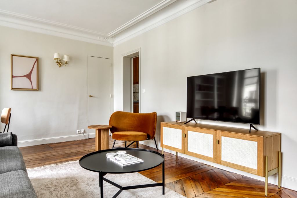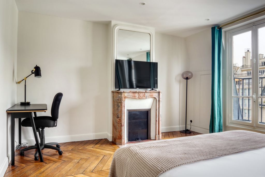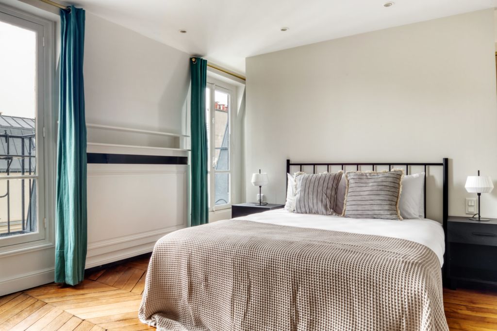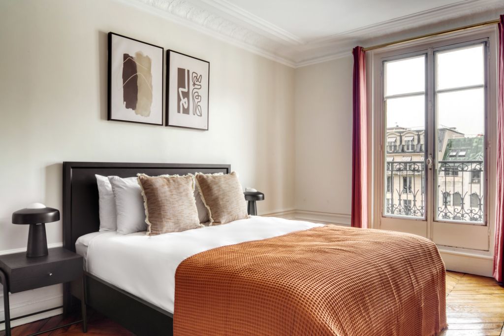 Discover the best of Paris, with this two-bedroom Saint-Georges apartment with balcony views over the city. It’ll be easy to simply show up and start living in this stylishly furnished apartment with its fully-equipped kitchen, charming living room, and our dedicated, on-the-ground support.Thoughtfully designed with bespoke finishes, modern furnishings, and a fully-equipped kitchen, you’ll enjoy that “I’m home” feeling with this apartment. Whether you’re lounging in your comfortable living room streaming the latest and greatest entertainment on the smart TV or premium wireless speaker, or getting some well-earned rest on the superior quality mattress with luxury linens, you’ll fall in love with everything this Saint-Georges apartment has to offer. This apartment also offers in-apartment laundry. Sleeping Arrangements Queen Bed, 63in/160cm Queen Bed, 63in/160cm Amenities Building amenities unique to this two-bedroom include an on-site: – ElevatorA few things to note:Building amenities may have an extra cost.Notice: Displayed prices and data are not final, and should be used for informative purpose only. They are not contractual or binding. Energy pass This building is not subject to EnEV.