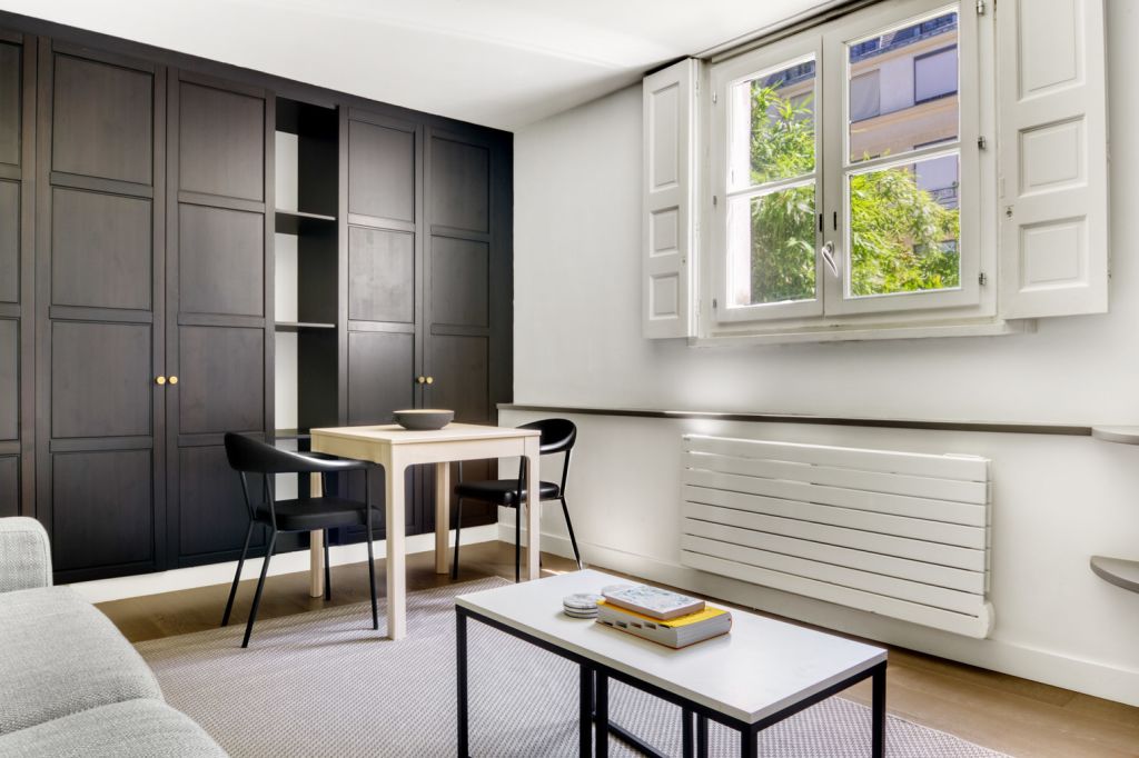 Discover the best of Paris, with this studio Saint Germain des Pres apartment. It’ll be easy to simply show up and start living in this exquisitely furnished apartment with its fully-equipped kitchen, cozy living room, and our dedicated, on-the-ground support.Thoughtfully designed with bespoke finishes, modern furnishings, and a fully-equipped kitchen, you’ll enjoy that “I’m home” feeling with this apartment. Whether you’re lounging in your exquisite living room streaming the latest and greatest entertainment on the smart TV or premium wireless speaker, or getting some well-earned rest on the superior quality mattress with luxury linens, you’ll fall in love with everything this Saint Germain des Pres apartment has to offer. Sleeping Arrangements Double Bed, 55in/140cm Amenities Building amenities unique to this studio include an on-site: – ElevatorA few things to note:Building amenities may have an extra cost.Notice: Displayed prices and data are not final, and should be used for informative purpose only. They are not contractual or binding. Energy pass This building is not subject to EnEV.