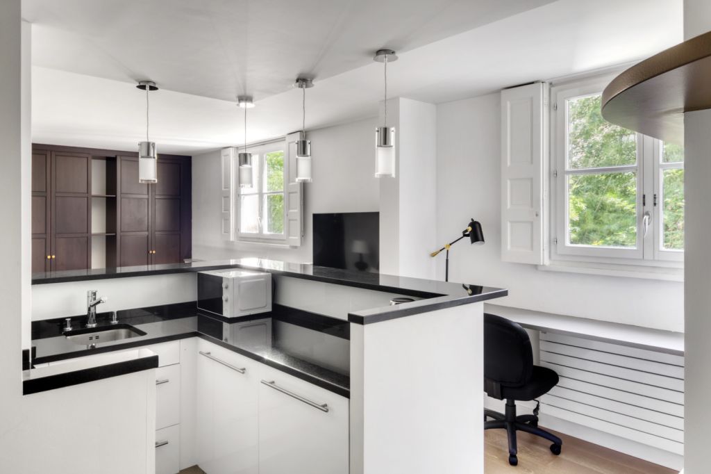 Long home to Paris’ literati, the 6th arrondissement’s Saint-Germain-des-Prés is stuffed with independent bookstores, art galleries, antique stores and literary cafés, with Le Café de Flore et les Deux Magots being the most famous. For weekend strolls, this furnished apartment finds itself only a few minutes’ walk from the Musée d’Orsay, the Musée Delacroix et the Théâtre de l’Odéon. This neighborhood is also home to the École Nationale Supérieure des Beaux-Arts and Sciences Po. Saint-Germain-des-Prés’ universities are connected by bus and by metro lines 4 and 10, notably Paris-Descartes, Paris-Sorbonne, Mines ParisTech, the Ecole Normale Supérieure and Panthéon Assas Paris II.
