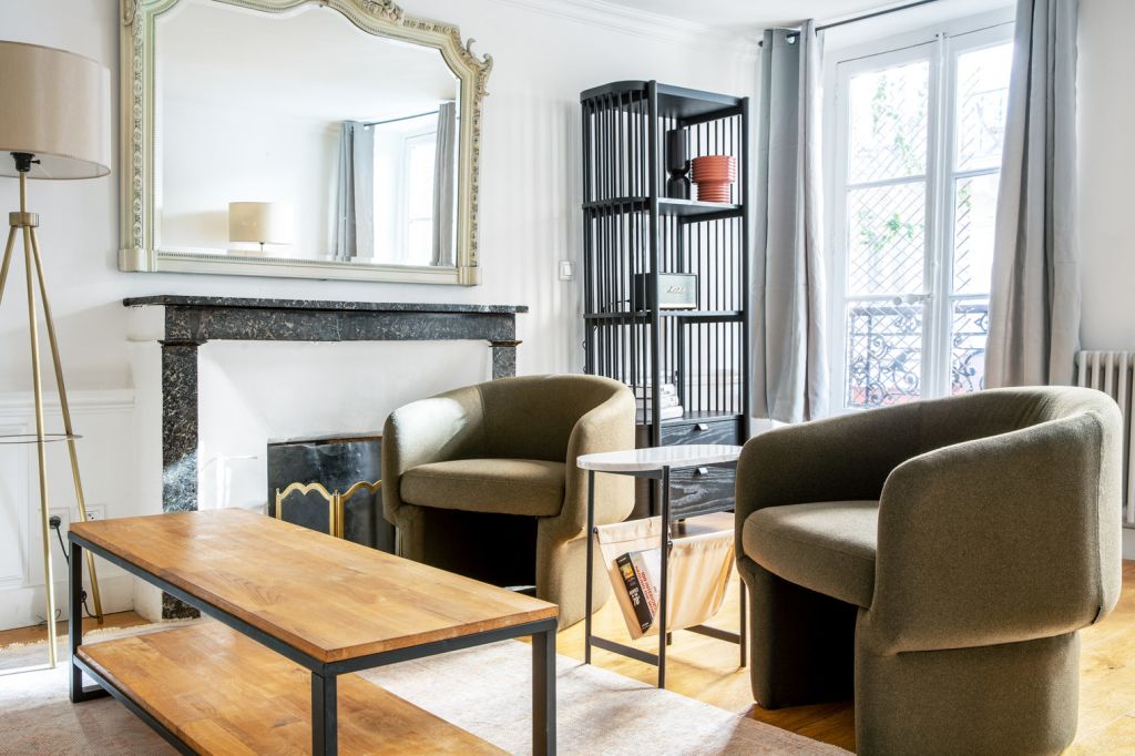 This idyllic apartment is conveniently located in Saint-Georges, located within the 9th arrondissement. Nestled between the Pigalle district and the churches of Saint Trinity and Notre Dame de Lorette, Saint Georges is hailed for its neoclassical and Haussmanian buildings. Saint-Georges is the perfect location to enjoy a quieter, small-town vibe than downtown Paris, and you will love the quaint shops and dining, as well as the famed Musée de la Vie Romantique.