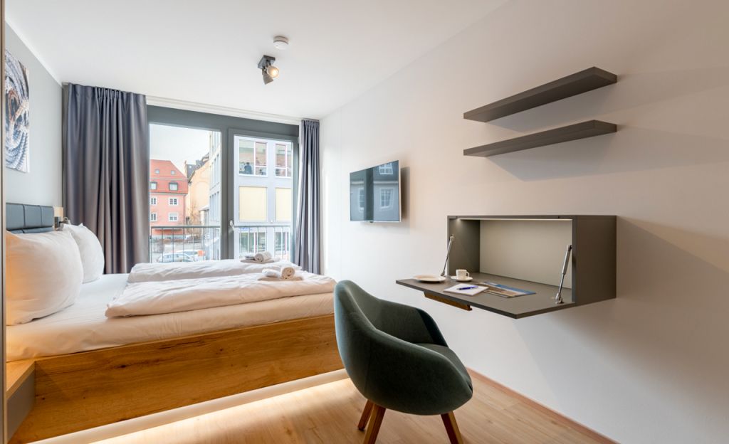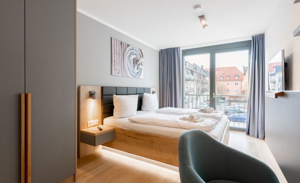 The 1-bedroom apartment is located in the east district of Regensburg, directly on the Danube. Here you live centrally, but still quiet. The apartment has a total area of 62,8 sqm and is equipped with everything you need to live. The apartment includes a complete kitchen with quality built-in appliances and of course pots, pans, cutlery and a wine fridge.A modern lighting concept and large windows bring light and atmosphere into the apartment. The living area has a comfortable sofa and a flat-screen TV, is adjacent to the kitchenette and has a separate dining area for two to four people.Due to the particularly good soundproofing of the windows, the sounds of the city remain outside. The separate bedroom has an additional flat-screen TV, and a large double bed. From your bedroom you come directly into the bathroom. Your bathroom has a whirlpool bath, two large sinks, bidet, hair dryer and makeup mirror. In addition, your apartment offers a separate guest bathroom with shower, toilet, washing machine and dryer. In your loggia, you can enjoy the view of Regensburg. Our reception is at your side during the day with help and advice. You can park your car in the underground car park. On request, your apartment can be cleaned or your laundry washed and ironed.Notice: Displayed prices and data are not final, and should be used for informative purpose only. They are not contractual or binding. Energy pass Certificate type: : , Year of construction: 2016 Efficiency class: C Energy consumption: 78kWh / (m²a)Anyone who has ever visited Regensburg raves about this city. Many architectural testimonies from a more than 2,000-year-old history, clearly show that Regensburg already played an important role in early times.Regensburg is today the third largest city in Bavaria and economically one of the emerging regions in the Free State. Many companies have settled here and are constantly looking for workers. With three universities, knowledge and research are very important.From gastronomic Regensburg convince. New, modern gastronomy concepts, classic Bavarian cuisine and top-class gastronomy at a high level are not only exciting for tourists.From the apartment you can reach the Danube River in less than 1 minute and the Old Town in 10 minutes. Here you can visit the landmarks such as the Regensburg Cathedral, the Stone Bridge, the Golden Tower, the Reichssaal and many other attractions.Numerous museums, two theaters, a cabaret and a gallery complete the cultural offer.The ground floor houses a restaurant that emphasizes local meat and ingredients. Here you can enjoy fine food and wines. In fine weather you can enjoy the view of the Danube from the terrace.