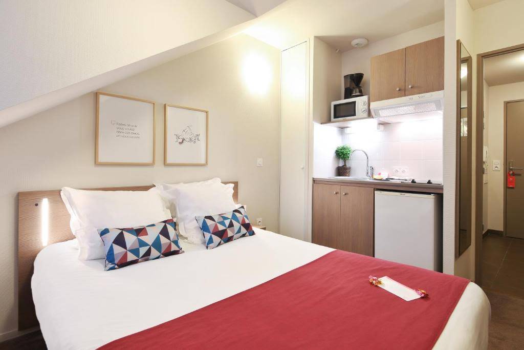 The studios and apartments feature a flat-screen TV, a desk, a wardrobe and a private bathroom with free toiletries. The kitchenette is equipped with a microwave, hotplates and a refrigerator.EQUIPMENT• Quality bedding: a double bed or two single beds• Workspace• Equipped kitchen area• LCD flat screen TV• Very high speed 100% fiber Wifi InternetTourist tax 1.50€/adult/day will be requested on site.Notice: Displayed prices and data are not final, and should be used for informative purpose only. They are not contractual or binding. Energy pass This building is not subject to EnEV.