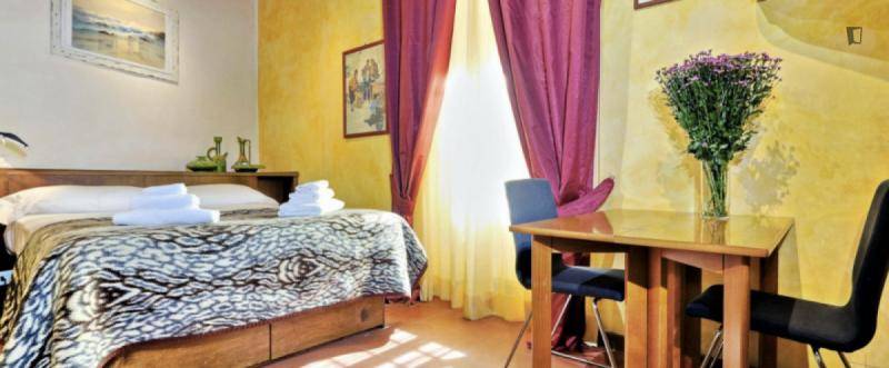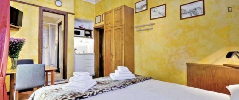 Non vedo l’ora di iniziare una nuova avventura all’estero e scegliere Roma come destinazione Situato vicino alla stazione della metropolitana Spagna, questo grande appartamento vi permetterà di conoscere l’anima unica della città insieme a qualcuno vicino. Troverete in questa città luoghi da esplorare e dal momento che l’appartamento è vicino diversi negozi, supermercati, ristoranti, bar e molto altro ancora! Sarete impostati per mesi a venire. Lo studio dispone di una camera da letto con letto matrimoniale. C’è anche un bagno e una cucina. Si prega di notare che questa offerta non accetta coppie. Questo è certamente un bel posto per avere un’esperienza studentesca ideale – tu e il tuo compagno di stanza avrai un bel momento. Si prega di notare che le spese sono incluse fino a 70 euro solo per i soggiorni superiori a 30 notti.