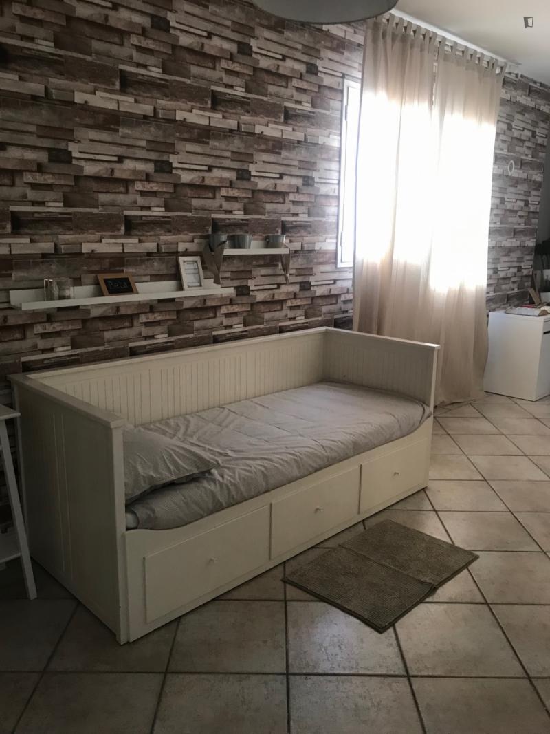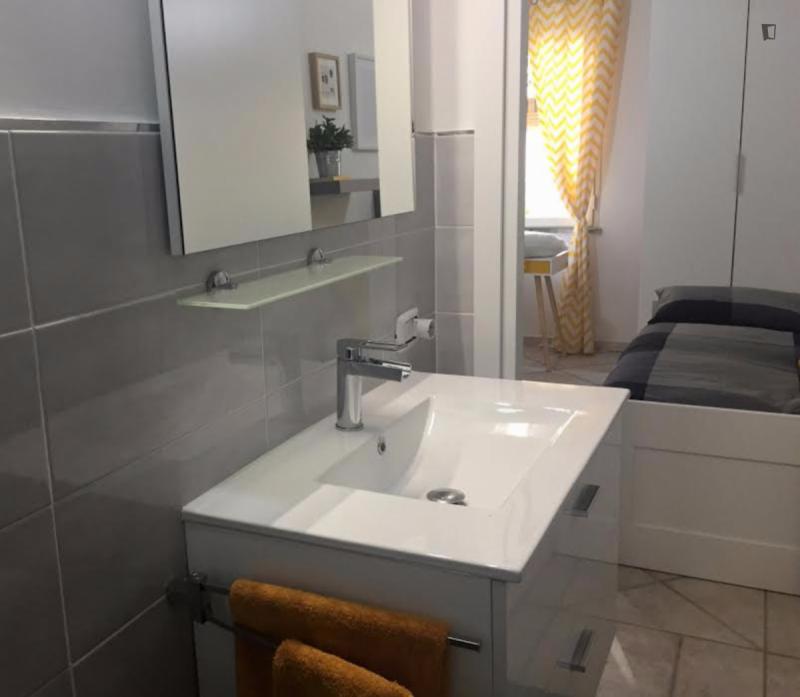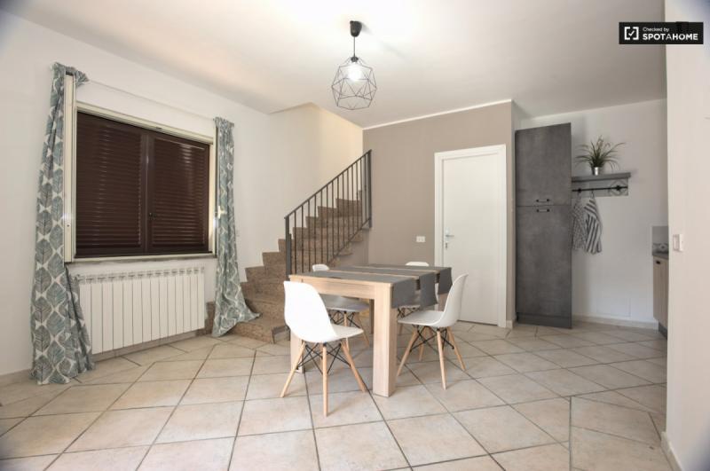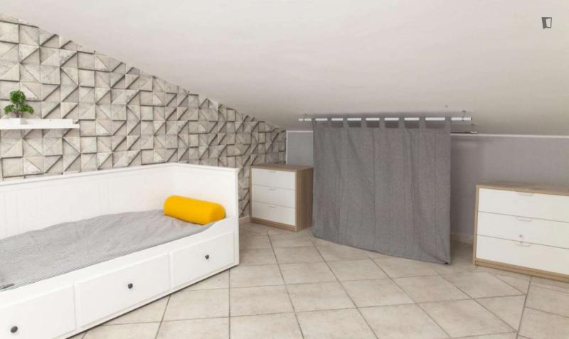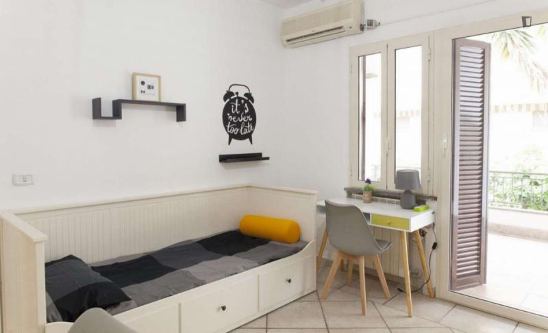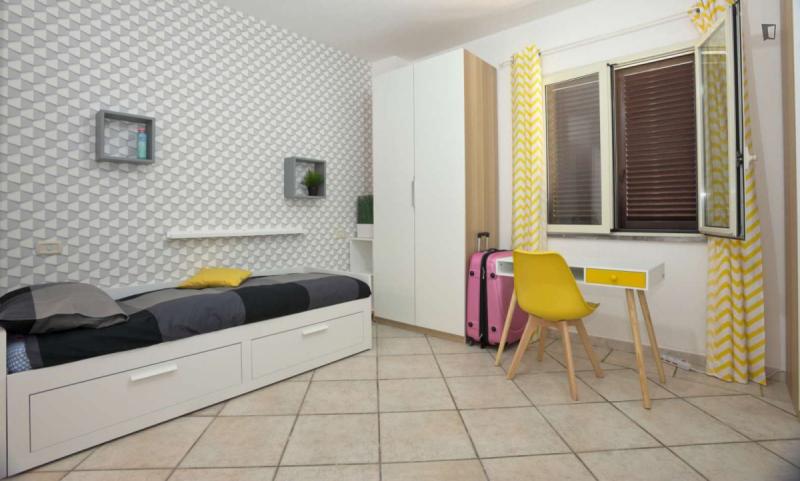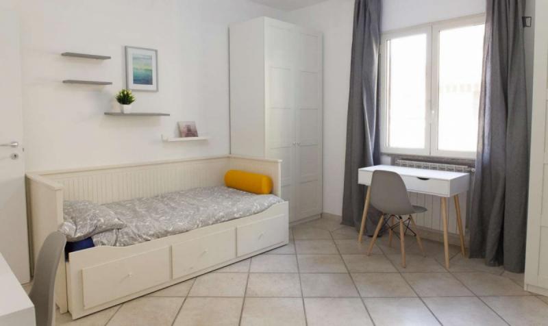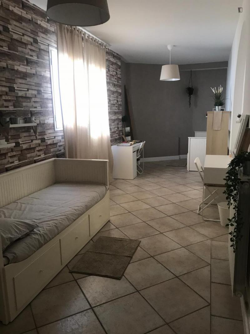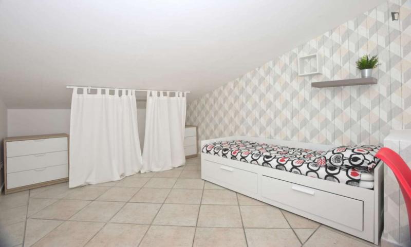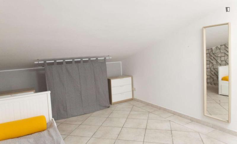 beautiful villa used as a university campus. Our idea has always been to create an environment that could put the student at the center, providing him with all the comforts and the possibility of creating a small community already inside the villa. The villa is very large, we have bedrooms, bathrooms, kitchen, hobby room, gym, study rooms, laundry. the added value is the common spaces both inside and outside, they offer a nice comfort, the common area with Ping-pong, table football, gym and cinema room, WIFI in the whole building, study room, in addition to the outdoor area with balconies, garden, parking for scooters and outdoor gazebo. The structure is just newly renovated in Nordic style. It is within walking distance of the supermarket, bar, post office and other useful commercial activities. At 50 meters from the bus stop and 500 meters from the FontaCandida metro station that connects the hotel directly to San Giovanni