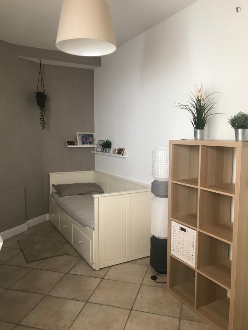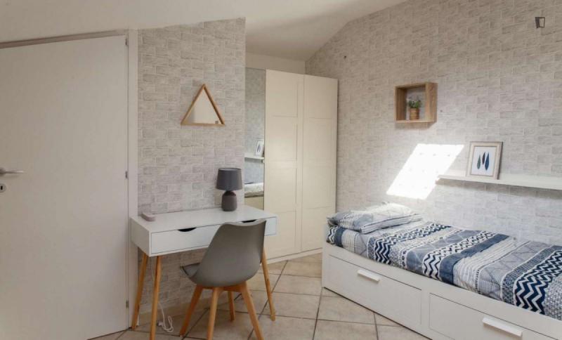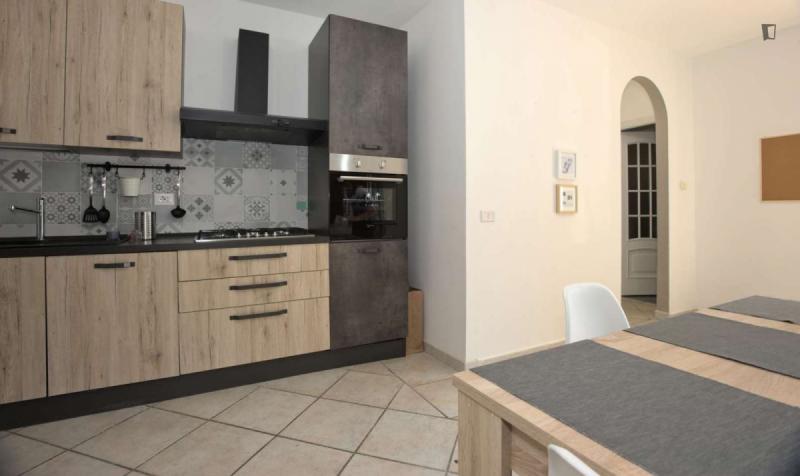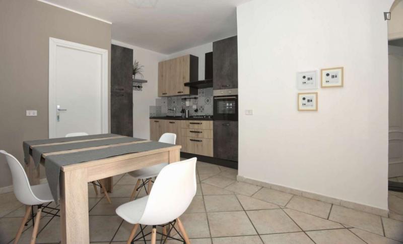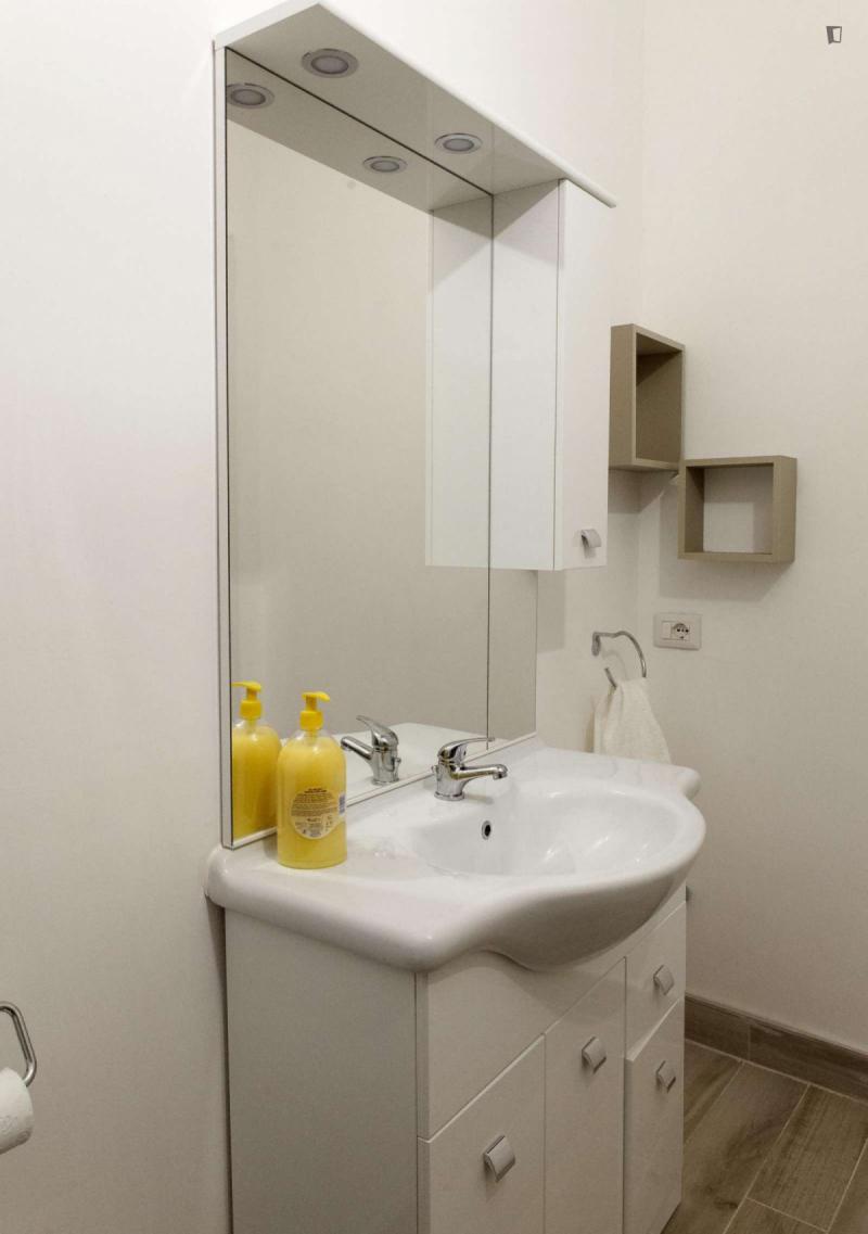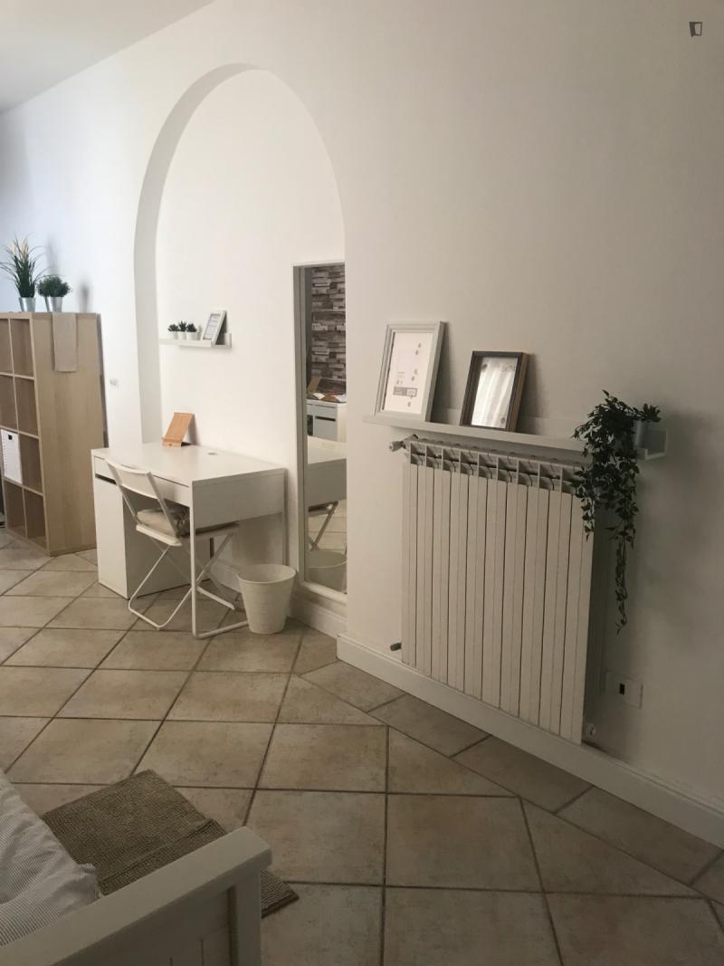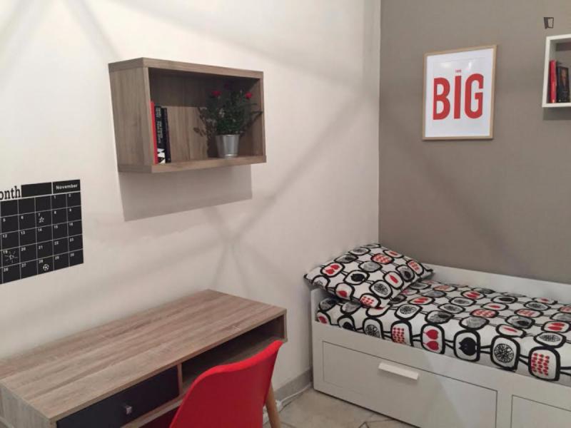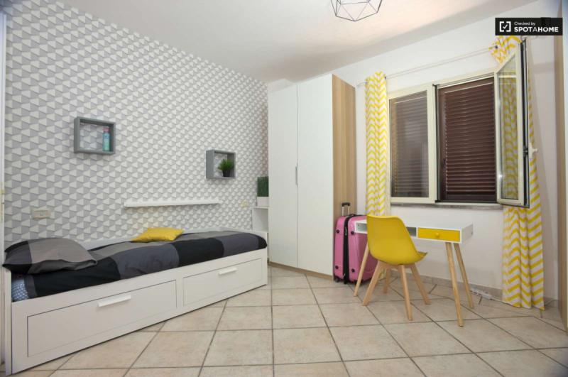 beautiful villa used as a university campus. Our idea has always been to create an environment that could put the student at the center, providing him with all the comforts and the possibility of creating a small community already inside the villa. The villa is very large, we have bedrooms, bathrooms, kitchen, hobby room, gym, study rooms, laundry. the added value is the common spaces both inside and outside, they offer a nice comfort, the common area with Ping-pong, table football, gym and cinema room, WIFI in the whole building, study room, in addition to the outdoor area with balconies, garden, parking for scooters and outdoor gazebo. The structure is just newly renovated in Nordic style. It is within walking distance of the supermarket, bar, post office and other useful commercial activities. At 50 meters from the bus stop and 500 meters from the FontaCandida metro station that connects the hotel directly to San Giovanni