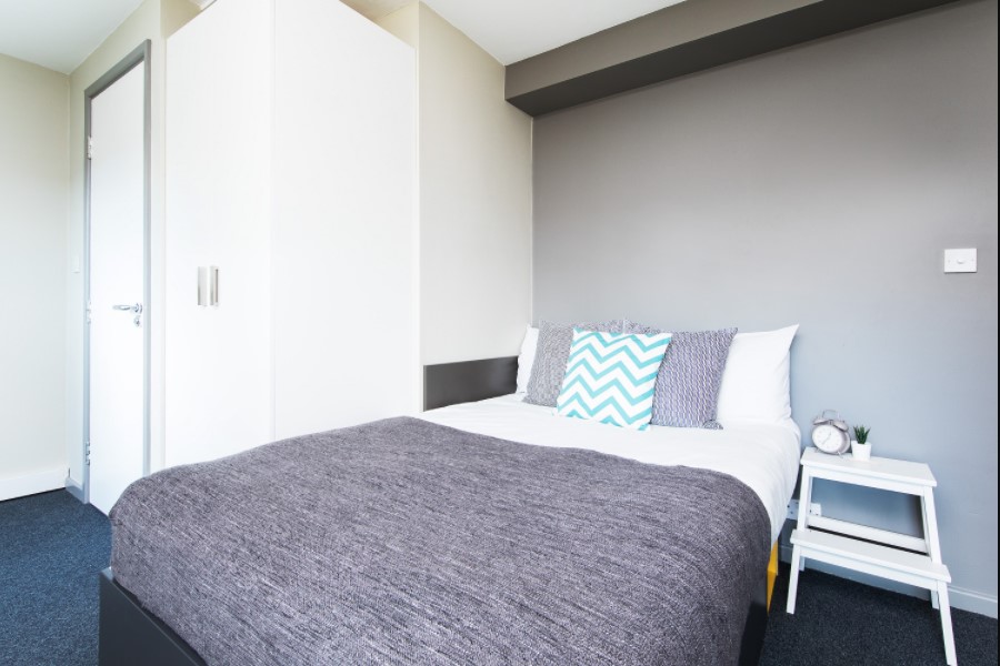 Our studio rooms are perfect for students looking for more privacy. You will have your own en-suite bathroom and fully fitted kitchen, as well as a comfortable bed, a wardrobe, plenty of additional storage for your belongings, and a Wi-Fi connected study space.
