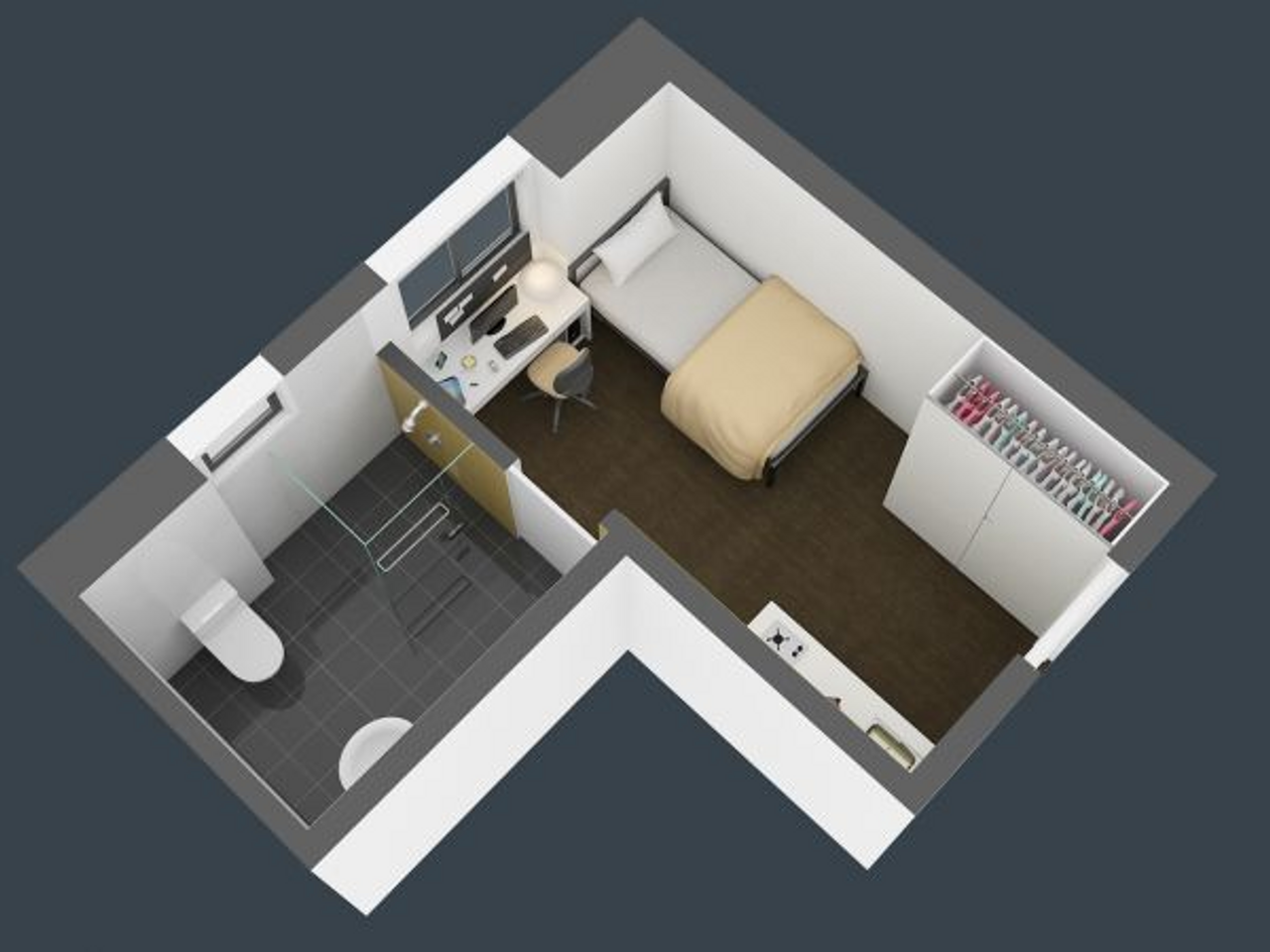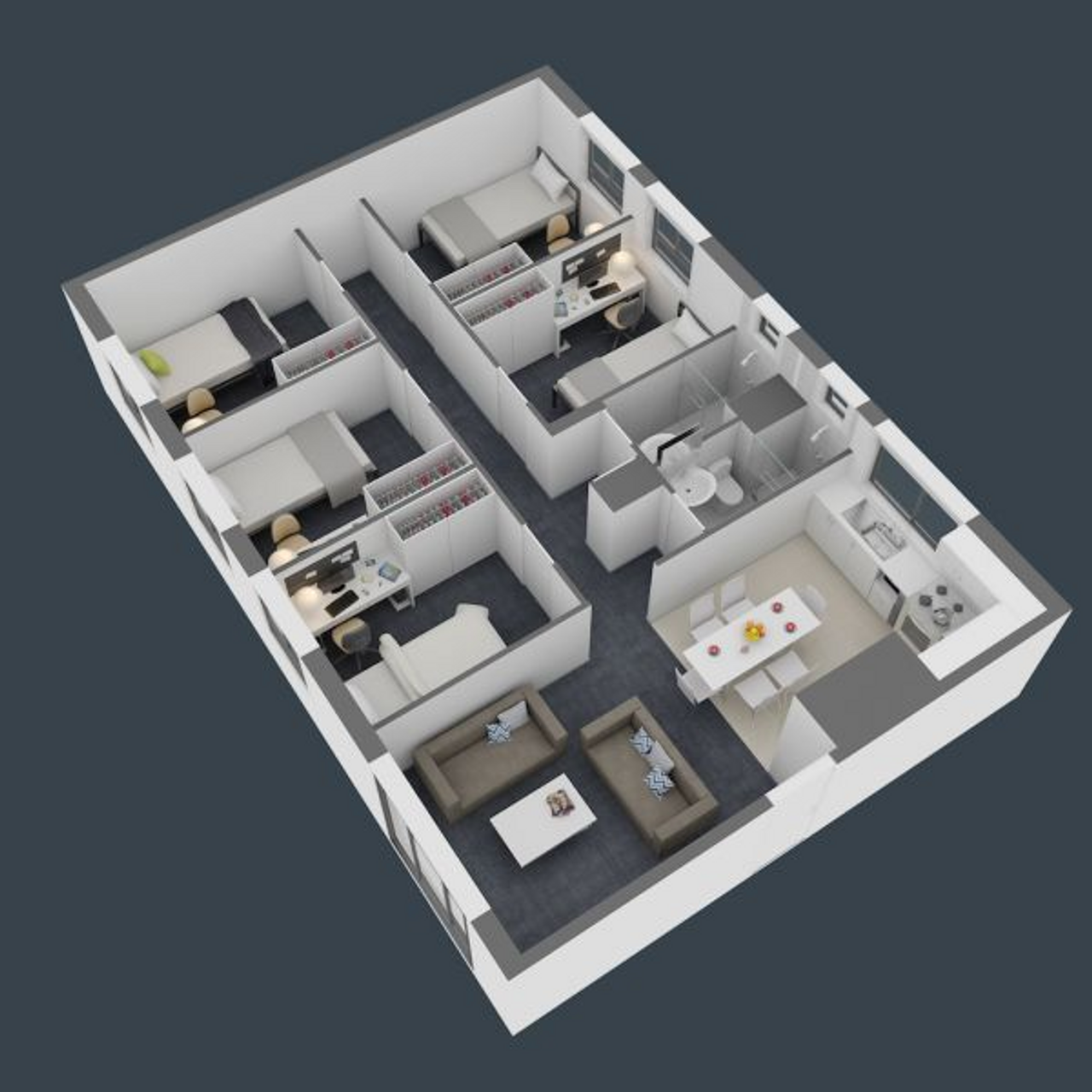 Western Sydney University Village Bankstown offers lavish studios and three, four and five bedroom apartments with amenities like an oven, wifi, fridge, kitchen , double bed and study table.