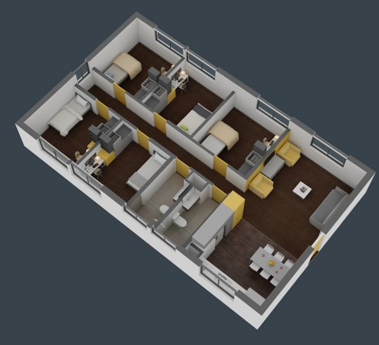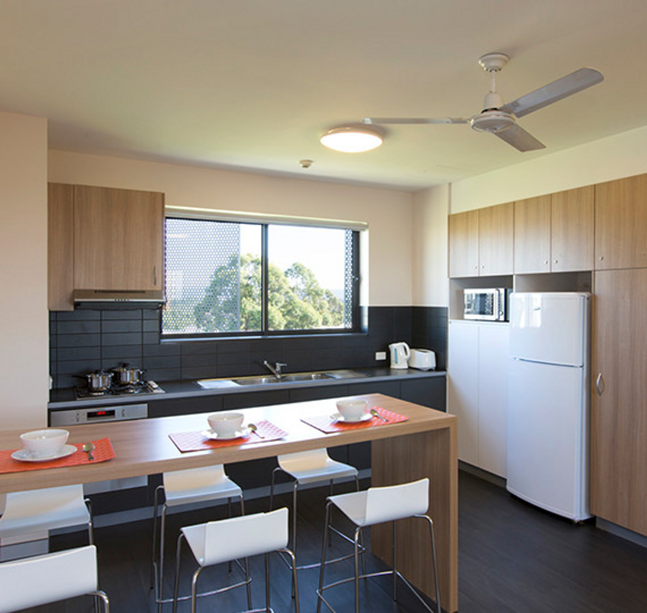Western Sydney University Village Penrith provides studios and three, four and five bed apartments with amenities including a fully equipped kitchen, a WiFi connection, an electric stove, oven, wardrobe, double bed, study table and Chairs.