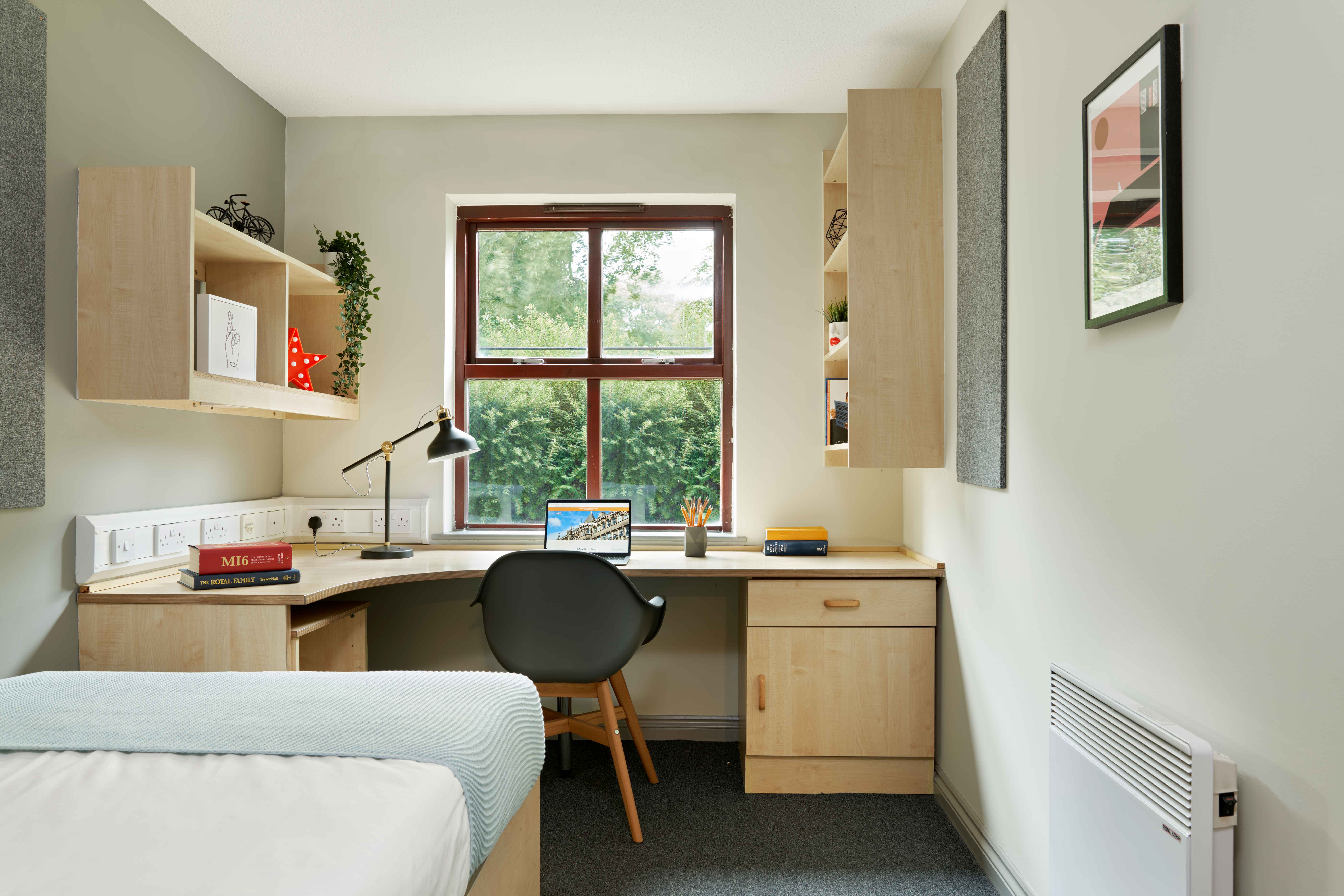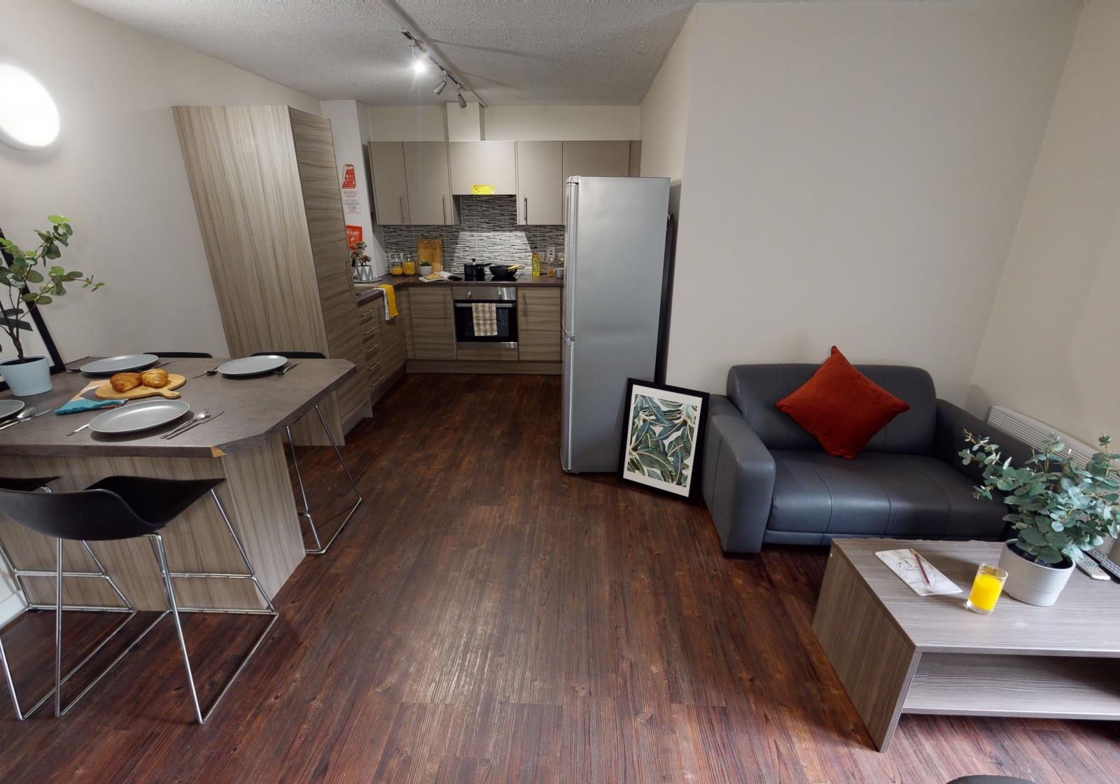 Accommodations at The Old Chapel offer modern, self-contained living, close to The University of Huddersfield, the town centre, and a variety of transportation alternatives. They were built with modern, student life in mind. Each room has an en suite bathroom and is fully furnished with a bed, a desk, and wardrobes. Additionally, free high-speed Wi-Fi and TV licences are included in the rent for the rooms. The six people who share the modern kitchens can use fridges, freezers, electric ovens/hobs, and washing machines. The property also includes a gym, garden and private parking. Â The University of Huddersfield is a 9-minute walk from the property. With everything you could need in easy reach, The Old Chapel is a great place to live during your time in Huddersfield.