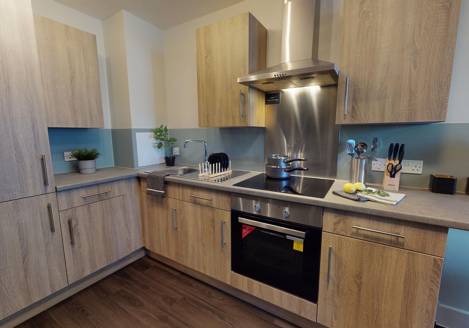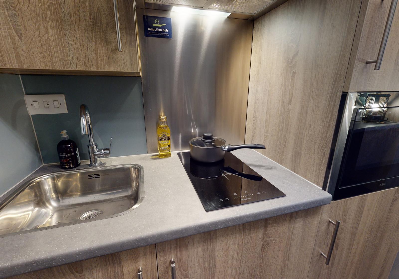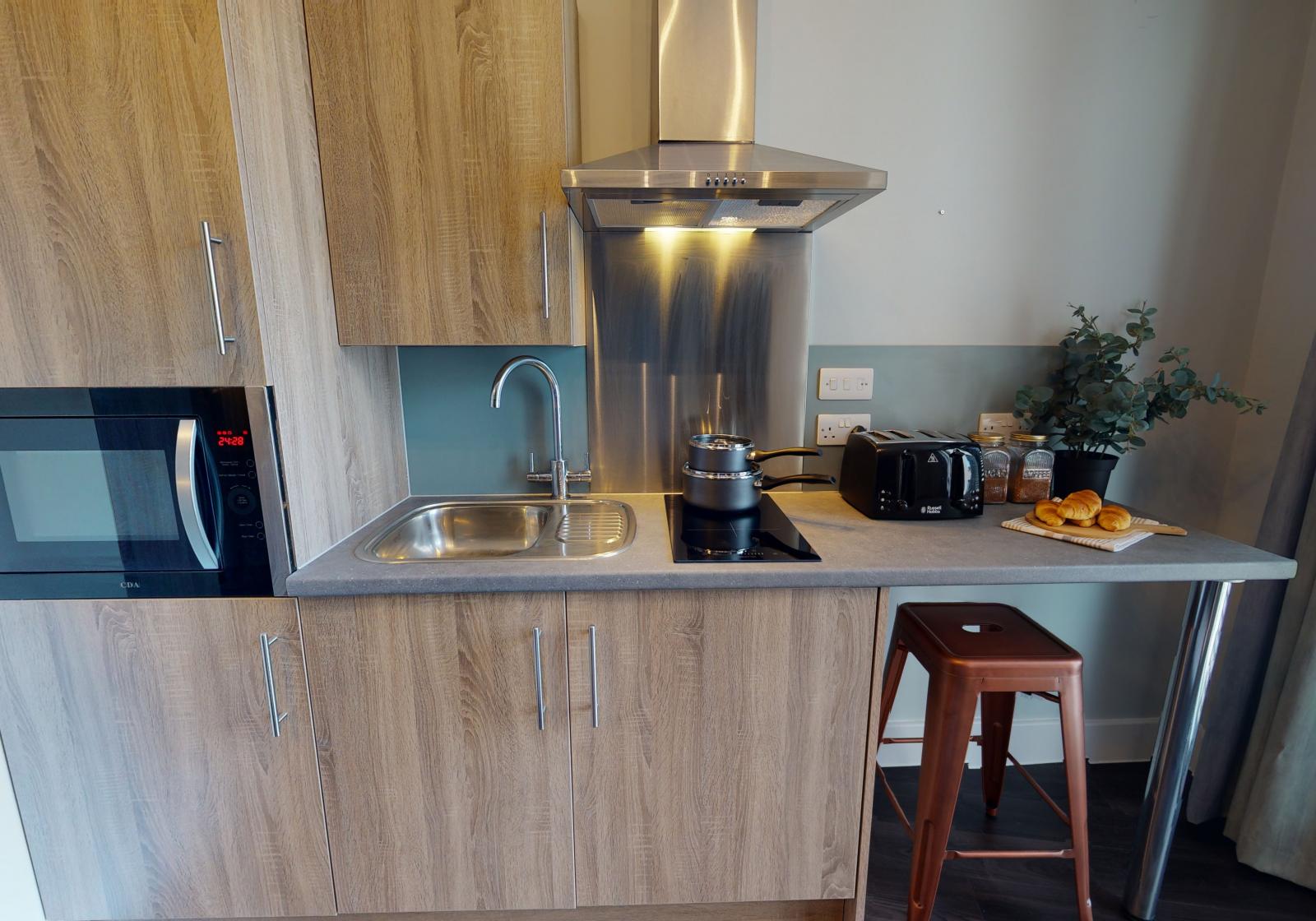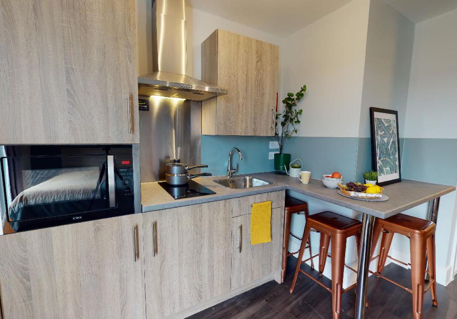 These smart studios provide a stylish living space with a bed, study area, storage and an en suite shower room. You will also have your own kitchenette for extra independence.