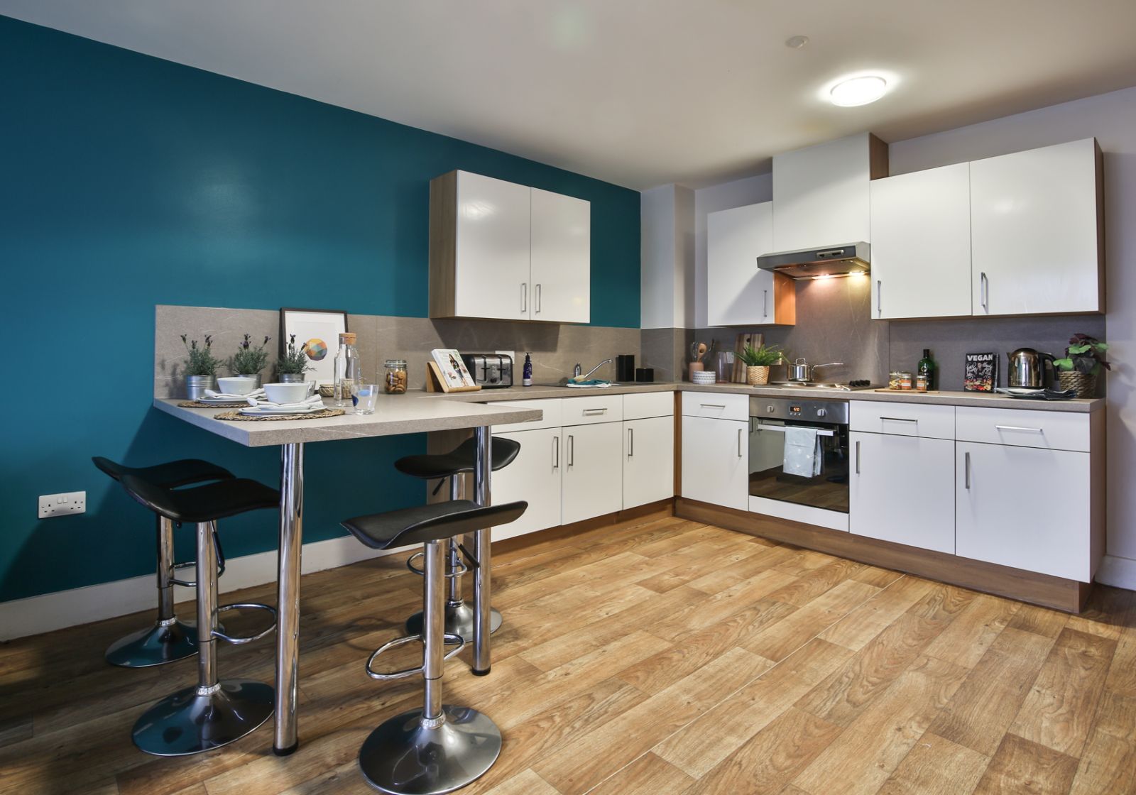 With 18-20 sq m of living space, loads of storage and all the essentials for private student living, our Silver Studios give you that little bit extra. You’ll have your own private kitchenette and bathroom plus double bed, TV, breakfast bar with stylish bar stools and study desk and chair. With communal social spaces in the building featuring a pool table and a piano, you get the best of both worlds.