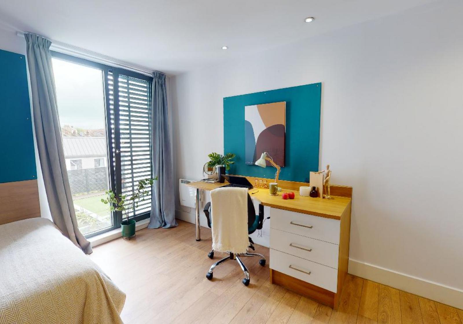 With fresh new furnishings and décor, the Silver En Suite Plus makes a great student home. Featuring its own shower room and study area, this room has the use of a shared kitchen and living area too.
