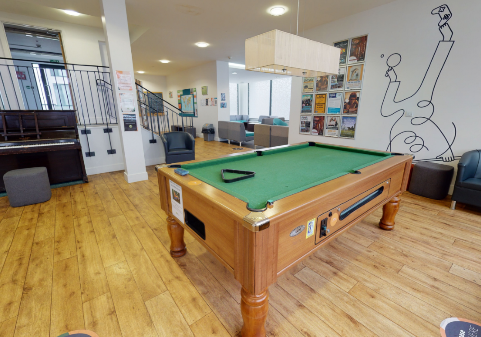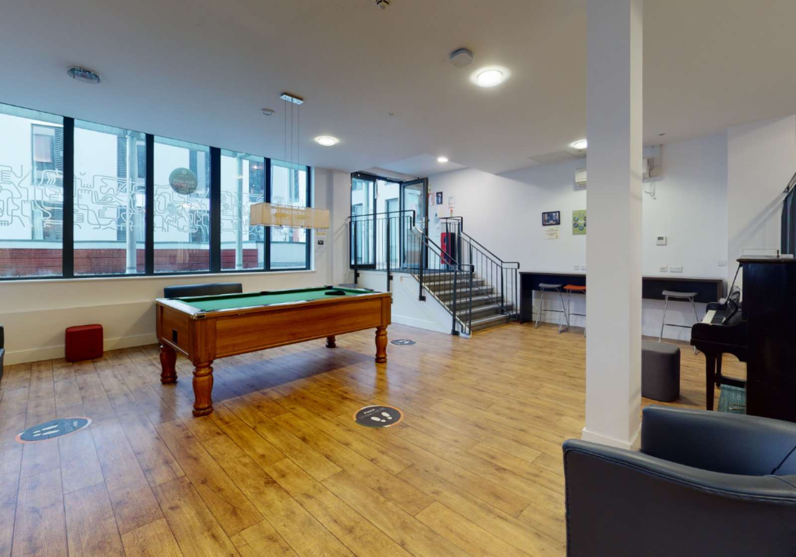 With a massive 21-25 sq m of living space, loads of storage and contemporary decor with wooden floors, our Gold Studios are a great upgrade from the usual student living experience. You’ll have your own private kitchenette and bathroom plus double bed, TV, breakfast bar with stylish bar stools plus study desk and chair. With communal social spaces in the building featuring a pool table and a piano, you get the best of both worlds.
