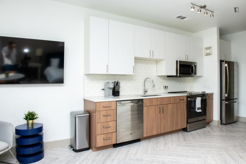 When you enter your Landing home for the first time, you’ll notice the modern tones throughout, from the open concept floor-plan to the perfectly paired with the sleek kitchen with stainless steel appliances. Our included furniture and decor are expertly selected and placed for this individual layout, and the mounted Samsung Smart TVs are ready for your enjoyment. Finally, your home is filled with our convenience amenities from the luxurious bedding to the completely stocked kitchen. Every element of your new home invites you to step right into a hassle-free living experience.