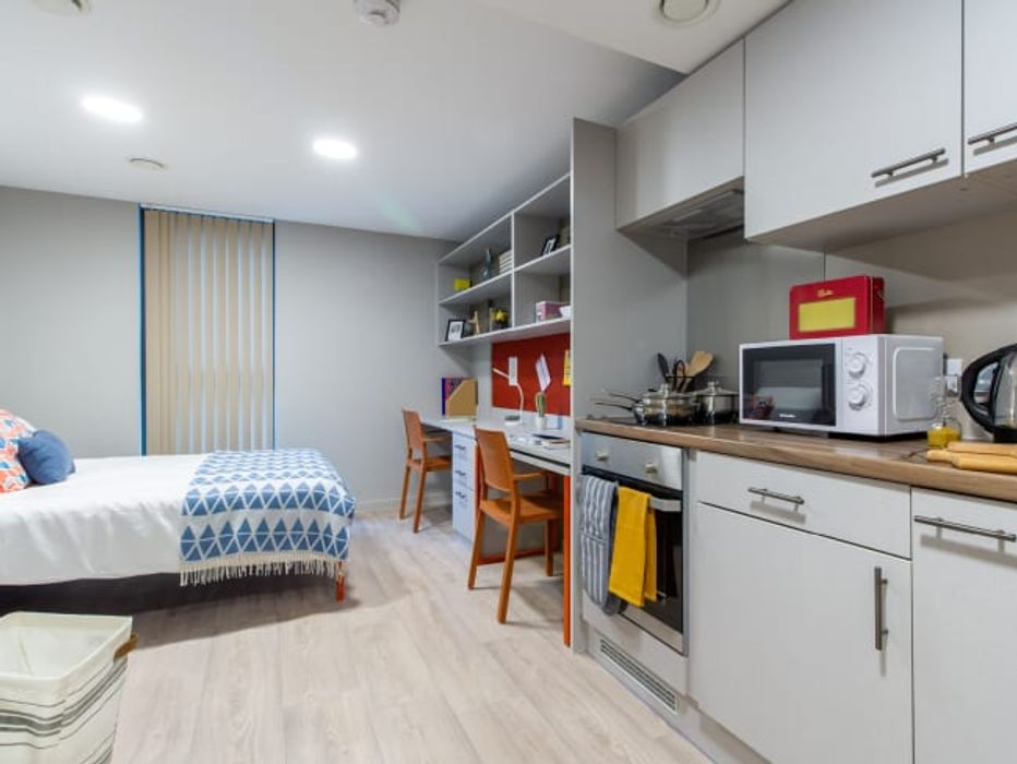 Each studio offers a small double bed, loads of storage, plenty of work space, en-suite shower room and your own private mini-kitchen. These studios are located on the 1st, 2nd and 3rd floors and offer around 19.6m2 to 21.22m2 of space.