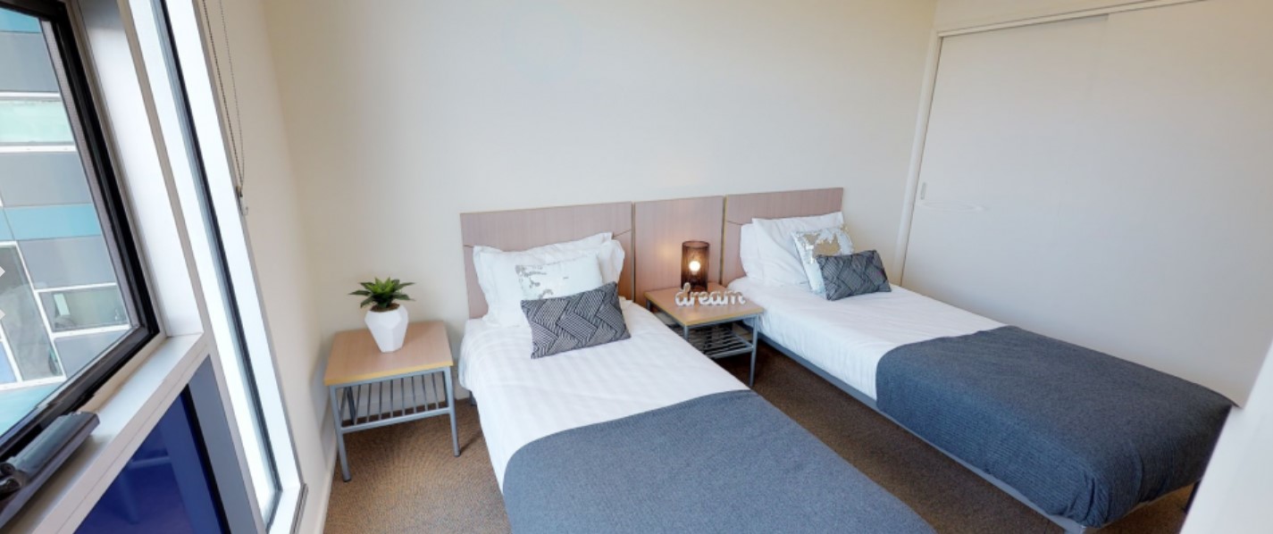 Unilodge College Square on Swanston provides modern and luxurious studio apartments, 1 bedroom regular and twin apartments, and 2 bedroom apartments. The features of the rooms include a single/double bed, built-in wardrobe, study desk and chairs, sofa, dining table, fully equipped kitchen with fridge, gas, microwave, self-contained bathroom and a vanity unit.