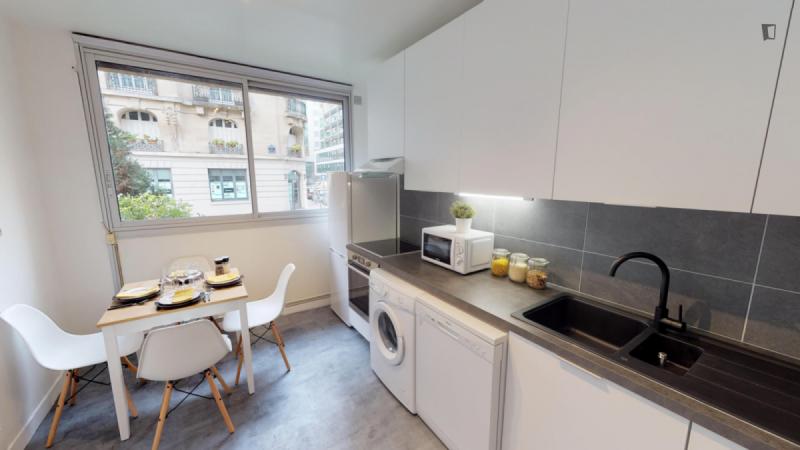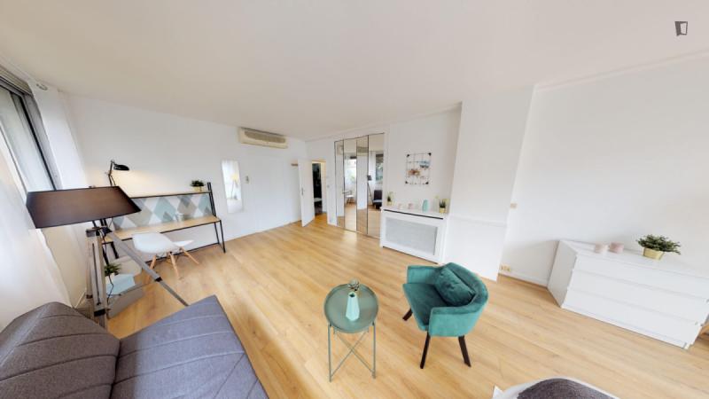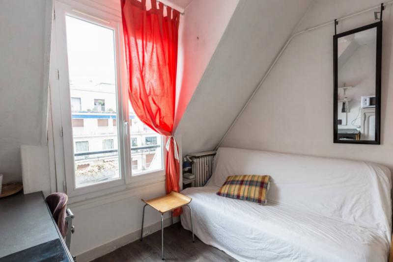 Si vous avez décidé de venir dans la grande ville de Paris pour poursuivre vos objectifs académiques, alors nous avons un excellent endroit pour vous installer comme base, ici même, dans le quartier du Faubourg Saint-Germain. Le studio est petit mais confortable et a tout ce dont vous avez besoin pour vous offrir une vie étudiante confortable. Il se compose d’un espace chambre avec un lit double et d’une cabine de douche avec un lavabo, les toilettes se trouvant à l’extérieur de la chambre dans le couloir principal. Il est à noter quil nya pas de cuisine, mais vous aurez une plaque de cuisson électrique et un four micro-ondes à votre disposition. Vous serez également bien situé, à proximité de nombreux restaurants, magasins et, bien sr, des transports en commun tels que la station de métro La Motte-Picquet – Grenelle. Profitez de l’occasion et venez étudier dans cette ville magnifique!