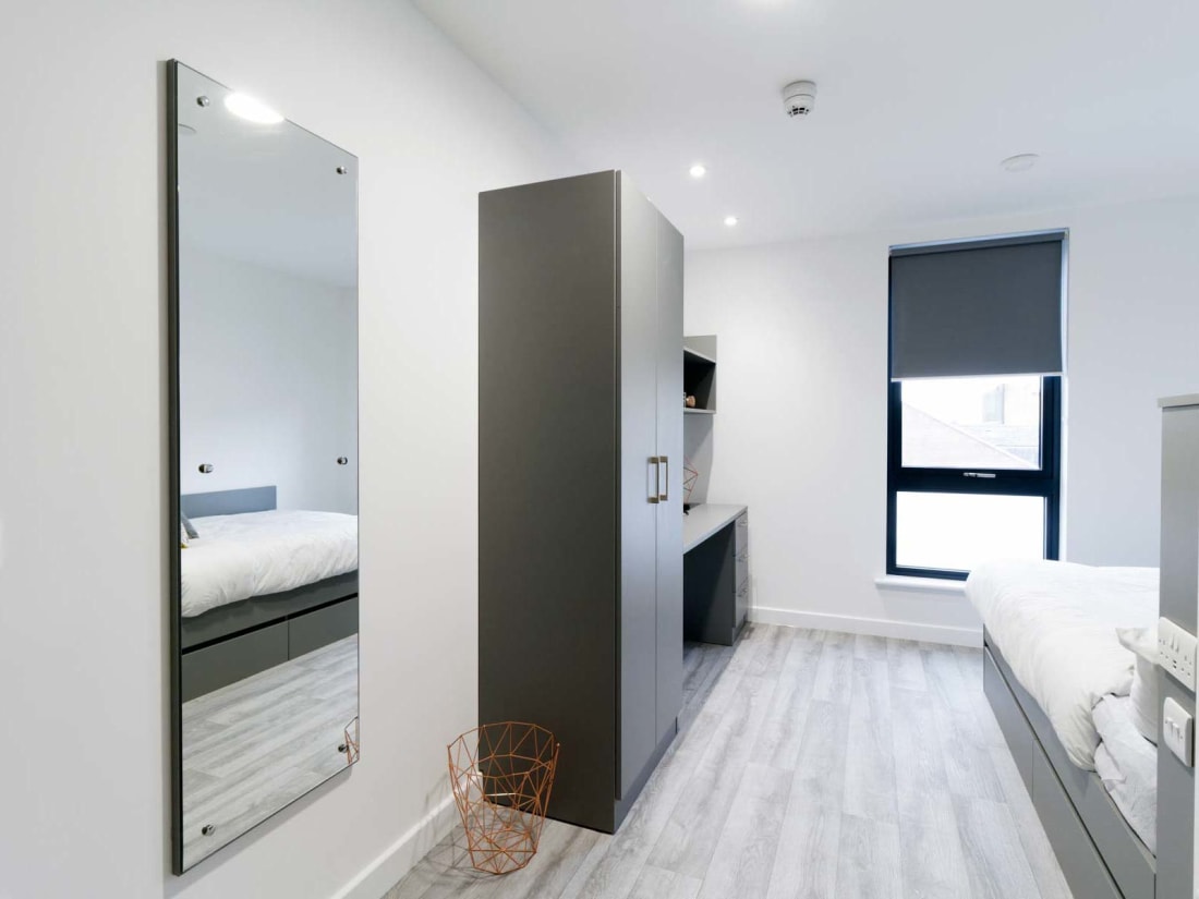 These rooms include a comfortable bed, study space, ample storage area to keep your belongings, private washroom, living area, and fully-fitted kitchenette. The accommodation provides several facilities like a large bistro area, high-speed WiFi, a central heating system, a cinema room, a games room, a 24-hour reception, and an outside courtyard.