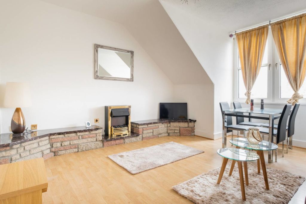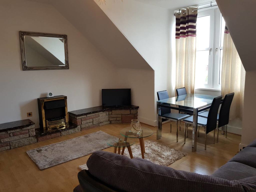The flat door opens to a hallway with the 1 bedroom and the lounge to the right, second bedroom straight ahead, kitchen and bathroom to your left. Bedroom 1 has a super-king size bed and bedroom 2 has a double bed. The Super king-size bed can be separated into 2 singles.The lounge has a comfy sofa to comfortably seat 6. There is a dining table to seat 4 persons and a fully equipped kitchen.Notice: Displayed prices and data are not final, and should be used for informative purpose only. They are not contractual or binding. Energy pass Energy pass not available, yet / In application process3 minutes walk to Great Northern Road- Direct bus to Airport- Bus 727 to Aberdeen Airport100 yards( literally at your doorstep)- Bus 23 to the city center, bus station, and train station.10 minutes walk to Kittybrewster Retail Park (McDonald’s, TK Maxx, Sports Direct, B&M, Pure Gym)12 minutes to Berryden Retail Park