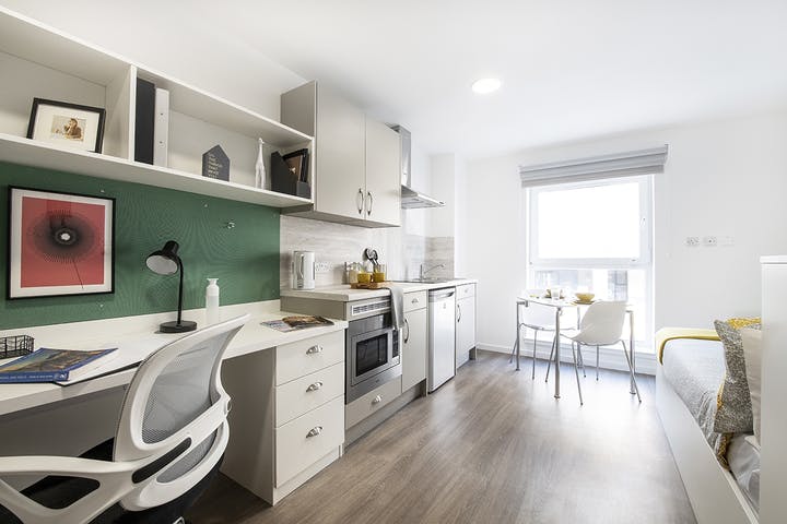Self-contained bedroom, kitchen and bathroom, Dual-occupancy available at no extra cost, Desk, chair, wardrobe and chest of drawers included in your room.
