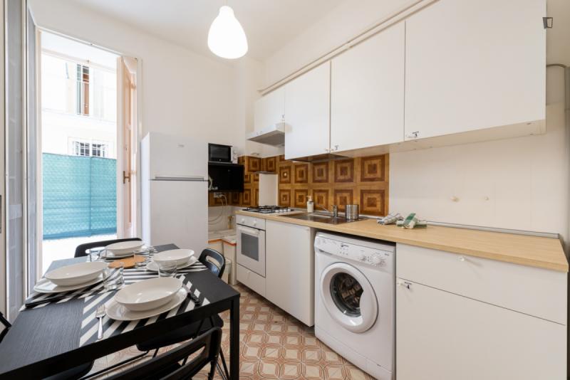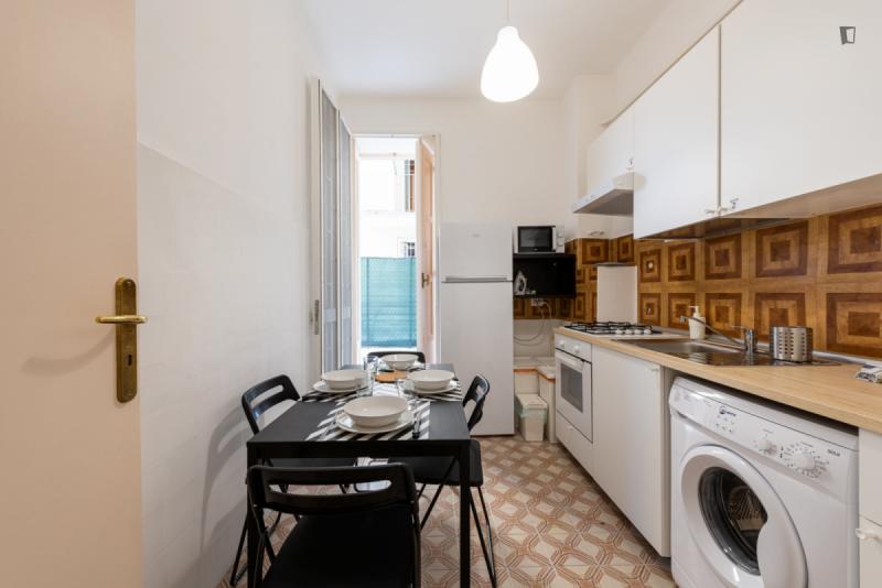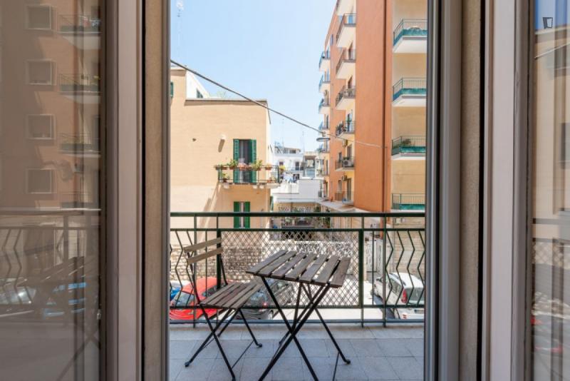 Large and bright room with private balcony in a comfortable shared apartment. The kitchen leads to a small terrace. If you want to enjoy a great stay in Bari in a comfortable apartment, it will make you room is located in an apartment of 4 room, 1 complete bathroom, one small with shower and wate and a toilet, a kitchen with fridge, microwave and washing machine and a relax area with comfortable sofa and TV. From the kitchen and the relax area you have access to the small terrace. The price includes condominium fees, wifi internet and an hour of cleaning per week in the common areas. RENTAL CONDITIONS: 1 Monthly rent: 380 which includes internet WiFi, condominium fee and heating must be given by the 5th of the every month. 2 Security deposit: 500,00 which will be refunded only one time. 3 Administrative Cost: starting from 300,00 only one time it includes: -Italian contract registration fee at the “Revenue Agency” to validate it by law starting from 65.50 euros -Documentation necessary to validate the contract like OFFICIAL FISCAL CODE -Weekly cleaning in common areas -Waste disposal fee -Italian TV rate -Final cleaning of the room -Routine maintenance and assistance. EXTRA COSTS: – Public services water, electricity and gas are for consumption NO HIDDEN COST! To consult values please contact us, we will be happy to help you : Located on the first floor, the apartment consists of 4 rooms totally furnished in order to cope wioth any costumer need, a fully equipped kitchen which represents a perfect place for sharing meals at the end of the day, a large terrace connected to the kitchen and two bathroom plus a toilet. A relax area is provided with a comfortable sofa and a television. It represents a great opportunity if you want to experience something out of the ordinary in Bari in a safe and high quality apartment. We are always present to support you at any time of need. RENTAL CONDITIONS: 1 Monthly rent: Depending on the room chosen which includes internet WiFi and condominium fee must be given by the 5th of the every month. 2 Security deposit: 500,00 which will be refunded only one time. 3 Administrative Cost: starting from 300,00 only one time it includes: -Italian contract registration fee at the “Revenue Agency” to validate it by law starting from 65.50 euros -Documentation necessary to validate the contract like OFFICIAL FISCAL CODE -Weekly cleaning in common areas -Waste disposal fee -Italian TV rate -Final cleaning of the room -Routine maintenance and assistance. EXTRA COSTS: – Public services water, electricity and gas are for consumption NO HIDDEN COST! To consult values please contact us, we will be happy to help you : The apartment is located in the “Madonnella” neighborhood is close to the sea and next to the city center. It is a very nice and popular neighborhood for young people and families. In Bari it is undoubtedly the most peaceful, livable, economical and multi-ethnic area. It is a district particularly rich of services and shops A few minutes away from the Bari Sud-Est train station that connects to the Central Station of Bari 2 minutes approximately. In addition to that a few meters away from the Lungomare Nazario Sauro and Corso Sidney Sonnino, there are several bus line. A few meters away you will find the Esedra cinema, the Palazzo theater, the Giaquinto Provincial Art Gallery, the Church of San Giuseppe 1930, the “Pane e pomodoro” beach, the Carabinieri barracks and above all the intense blue of our sea.