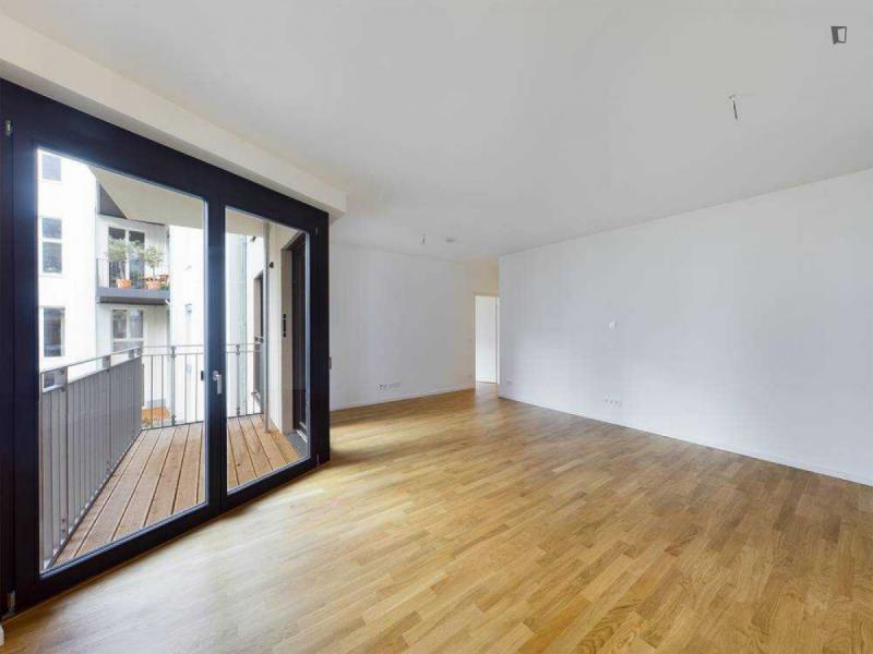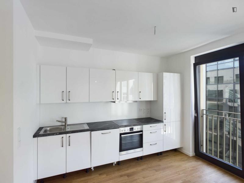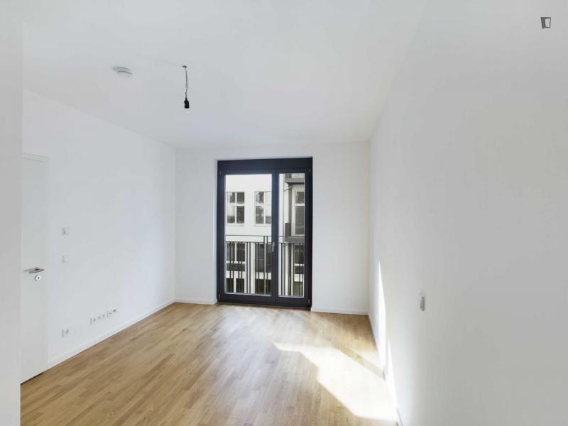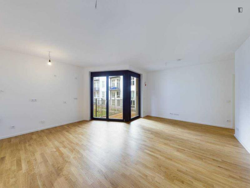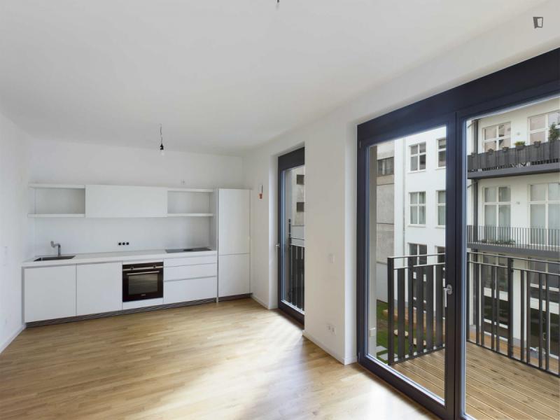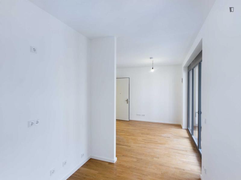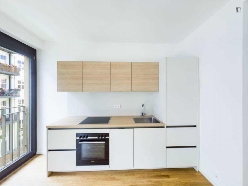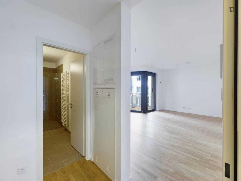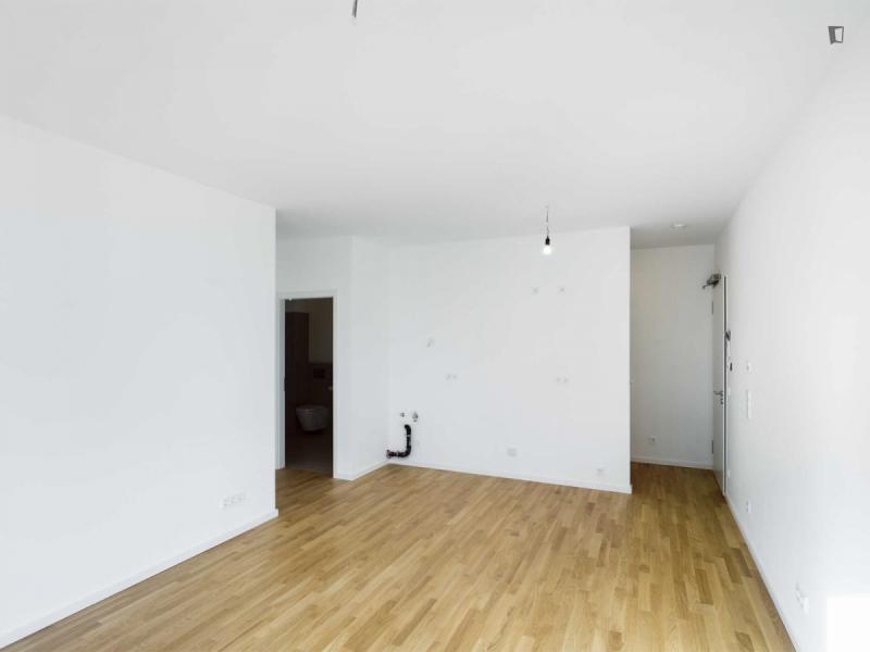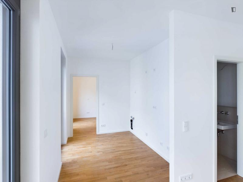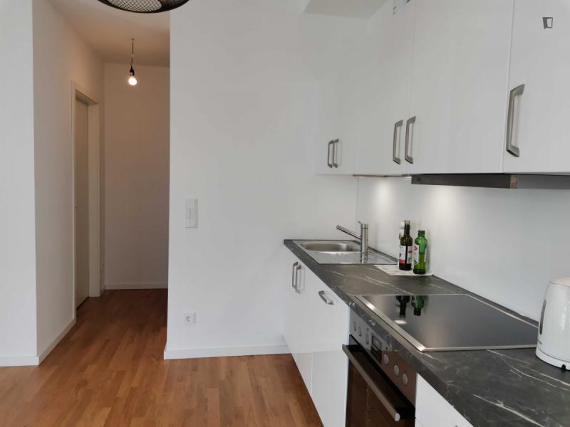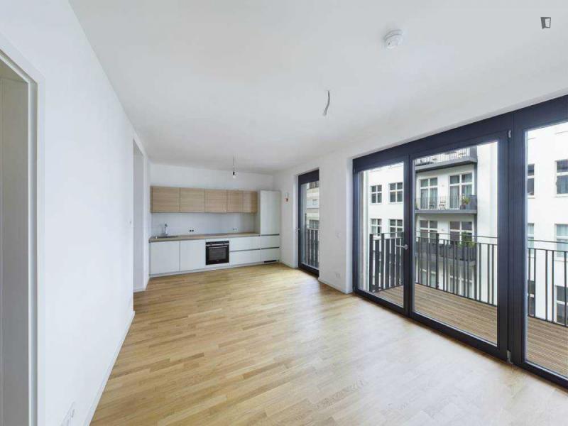 This attractive flat is a first-time occupancy, which is why the property is in immaculate condition. The property has two lovely rooms and it is easily accessible via a lift. The balcony provides the perfect opportunity to enjoy some relaxation time while enjoying the sun. The apartment is equipped with a fitted kitchen and comes including a cellar.