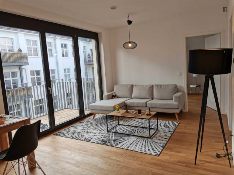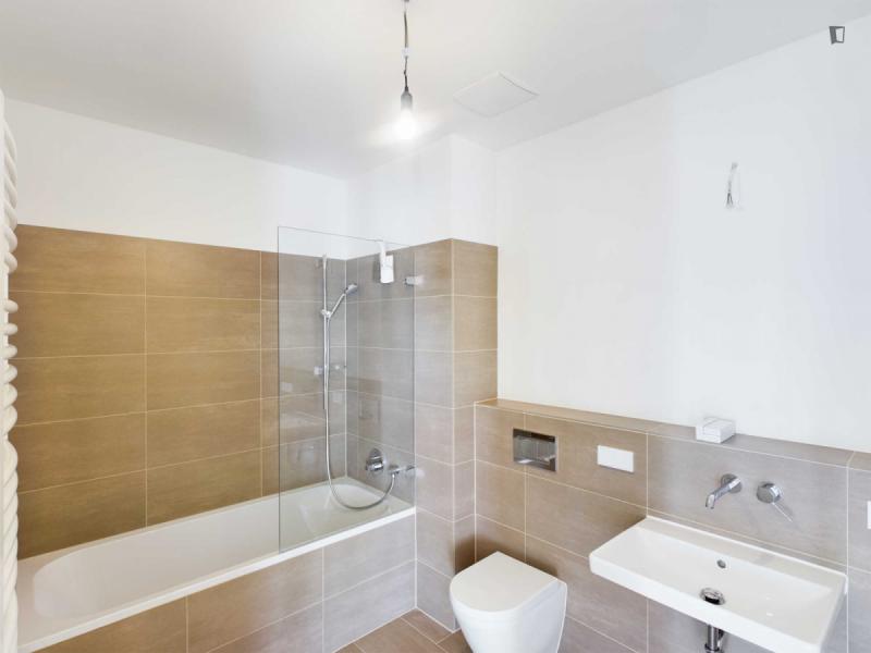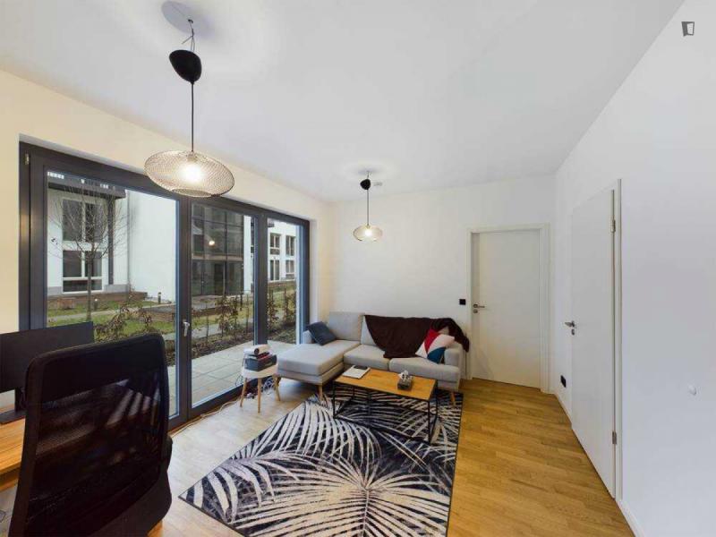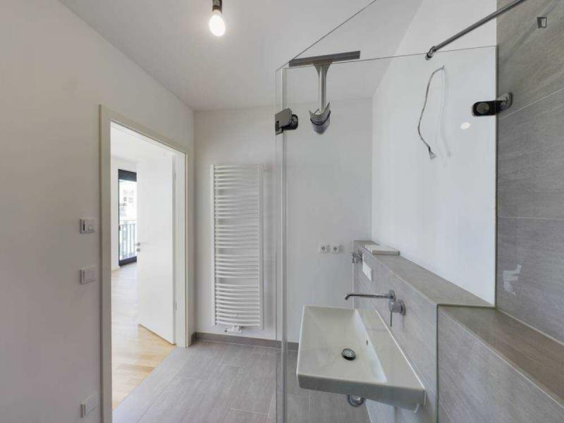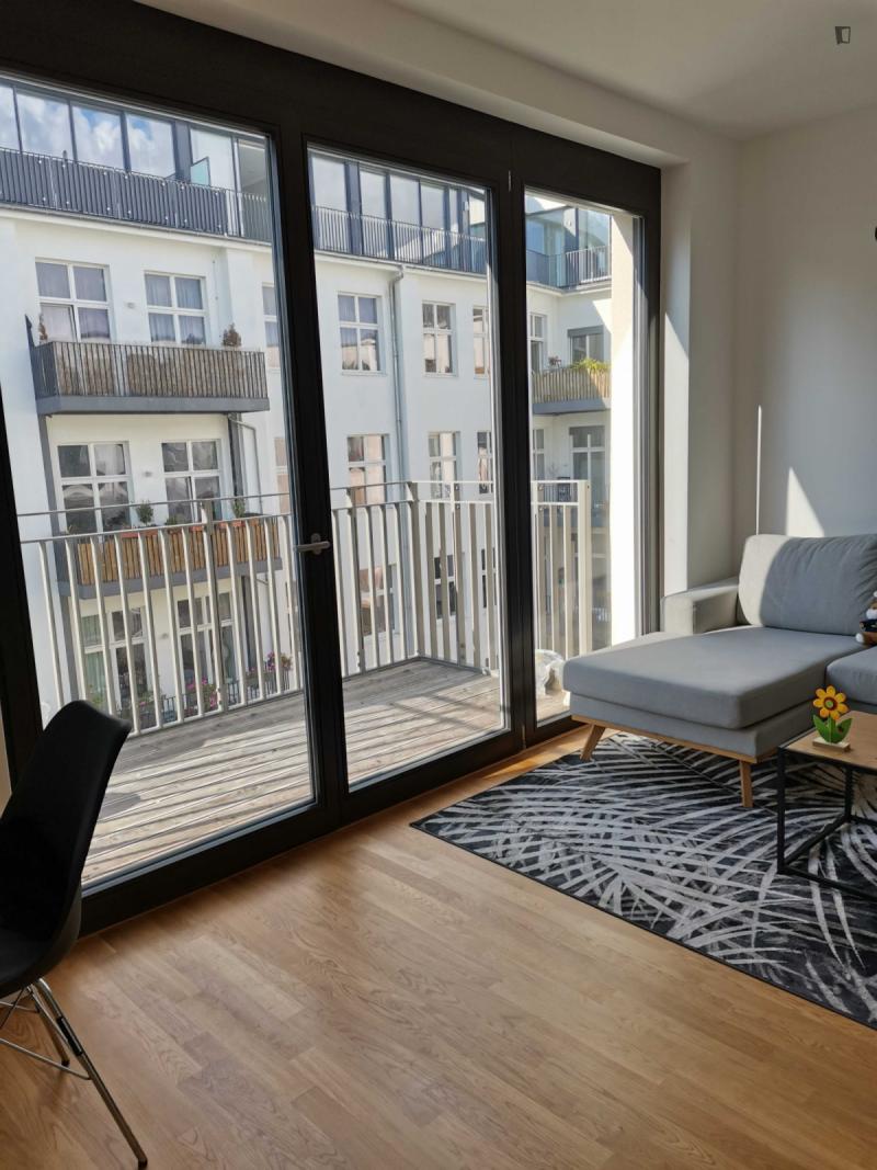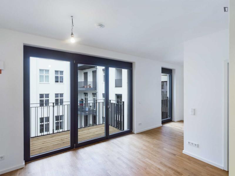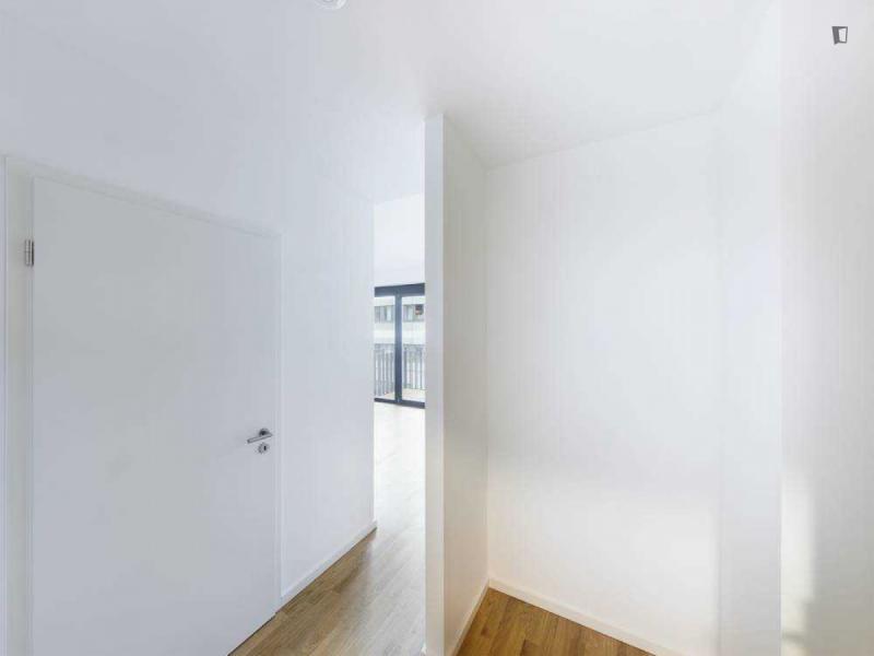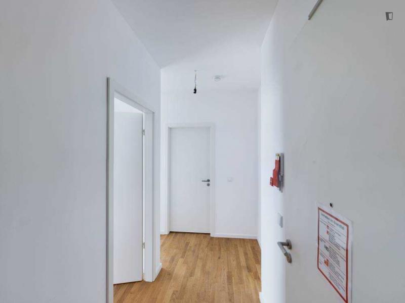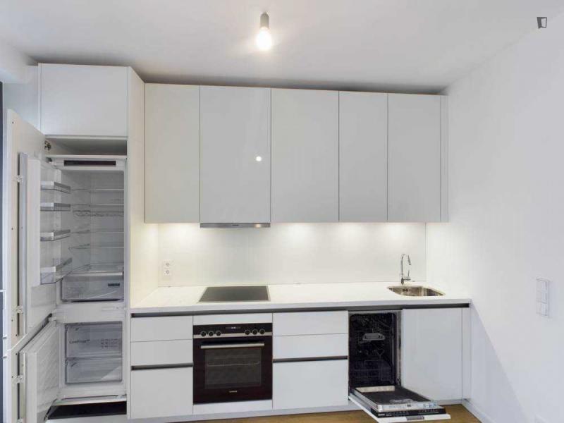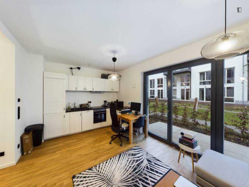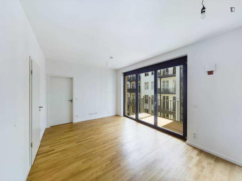 This attractive flat is a first-time occupancy, which is why the property is in immaculate condition. The property has two lovely rooms and it is easily accessible via a lift. The balcony provides the perfect opportunity to enjoy some relaxation time while enjoying the sun. The apartment is equipped with a fitted kitchen and comes including a cellar.