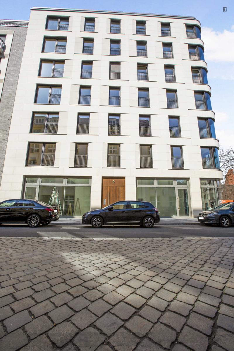The apartment is located in Berlin’s diplomatic quarter near to Gendarmenmarkt. Designed by the renowned Tchoban Voss architects, Das Embassy is an ideal retreat: spacious, exclusive, modern and yet inspired by the historical surroundings. Architect Nadia Kayat, known for her precision down to the smallest detail, is responsible for the high-quality interior design.