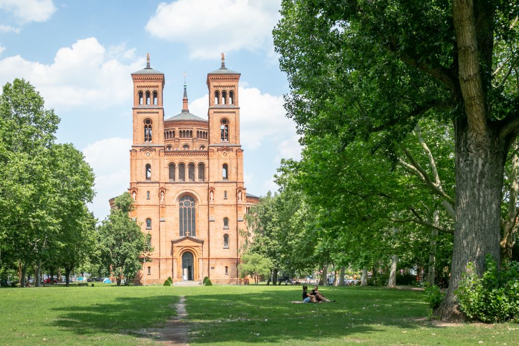 Another institution on Mariannenplatz is the Bethanien Art Quarter. Various cultural institutions settled here in the former deaconess hospital after it was shut down and then occupied in the 70s.On the north side of the square stands the St. Thomas church of Friedrich Adler.The beautiful and sunny Görlitzer Park is only a few minutes’ walk away.