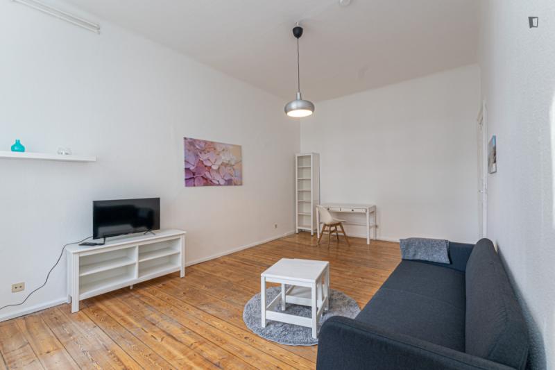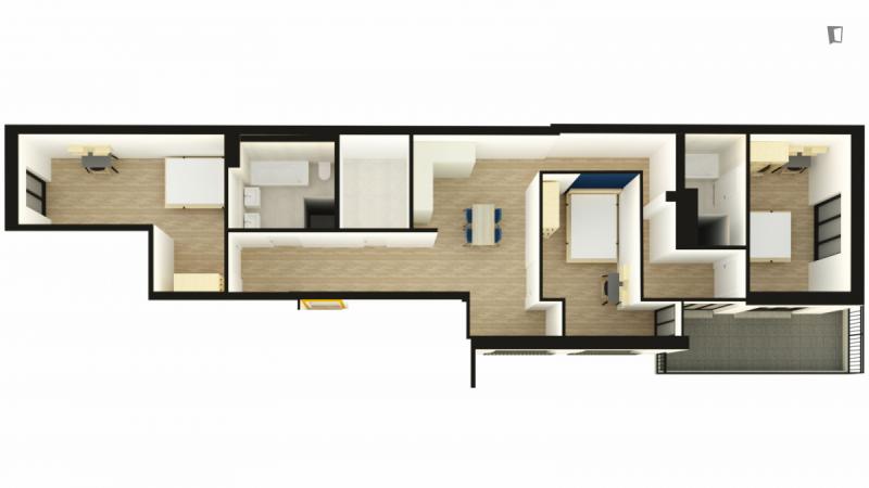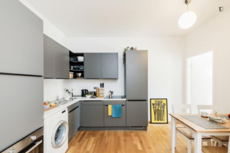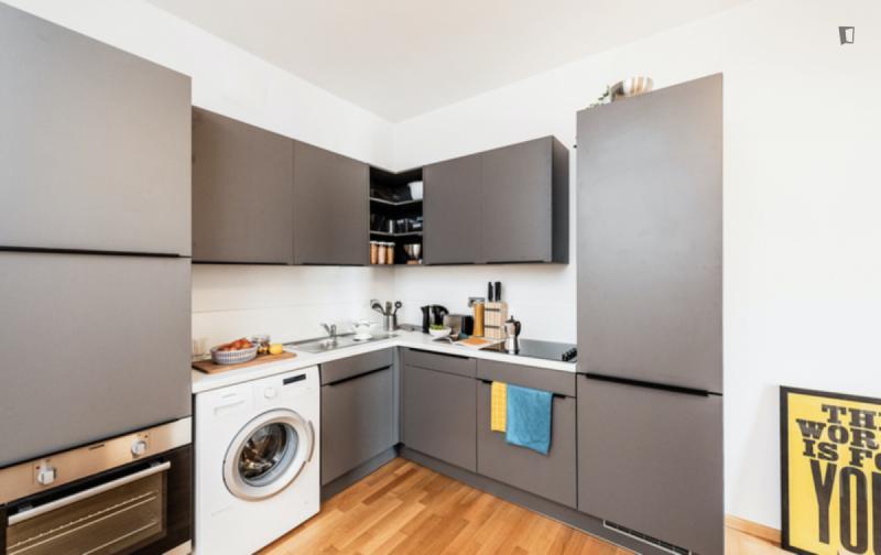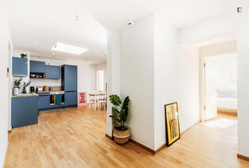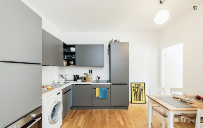 We are looking for a young working professional to join our Co-Living apartment. Our aim is to make your stay as pleasant as possible and therefore we offer private rooms in shared apartments fully furnished and equipped with a kitchen, refrigerator, oven/microwave, cooking equipment, washing machine, dishes and bed lined. The rental price includes an advance payment for utilities such as gas, water, electricity and internet.Besides the 1st month’s rent that needs to be paid through Uniplaces in order to reserve the room, there is a deposit of 1250 euros that needs to be paid prior to your move in date along with the one time agency fee of 149 euros.