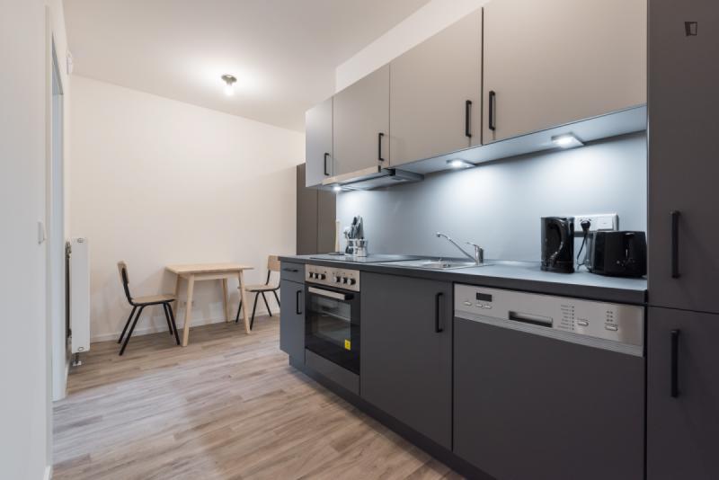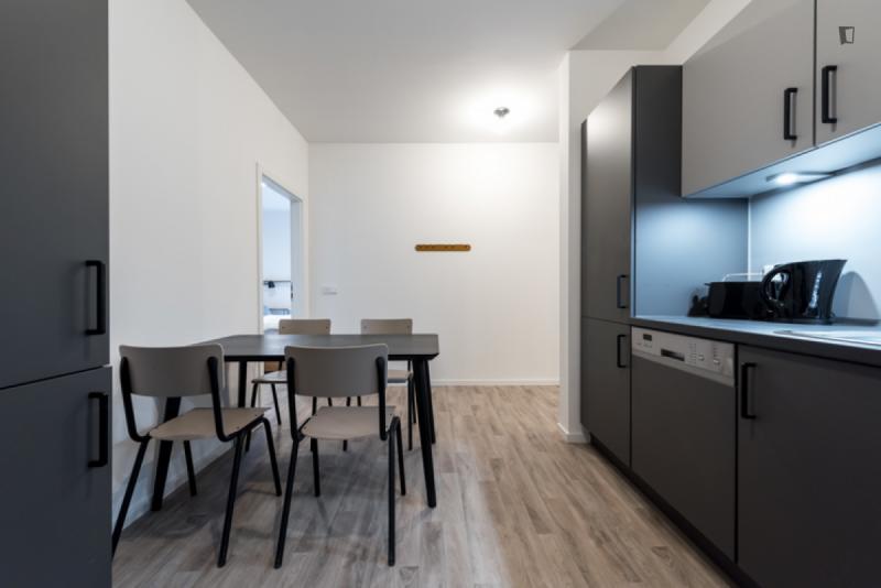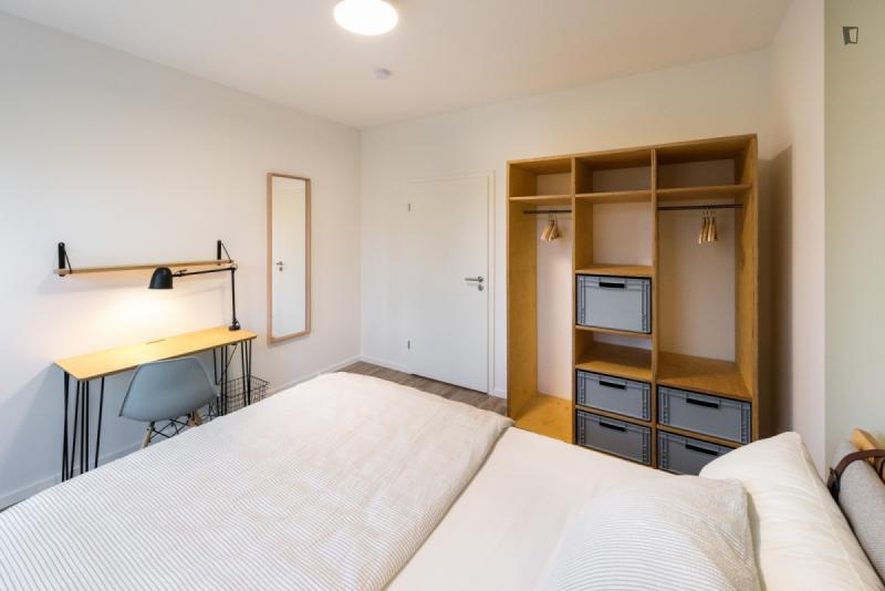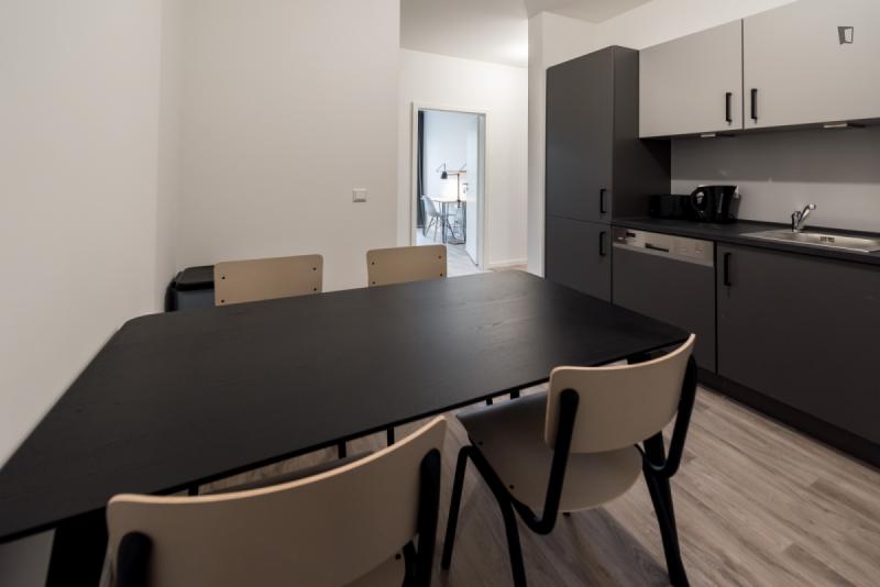 Estamos à procura de um jovem profissional que trabalha para se juntar ao nosso apartamento Co-Living. Nosso objetivo é tornar a sua estadia o mais agradável possível e, portanto, oferecemos quartos privados em apartamentos compartilhados totalmente mobiliados e equipados com cozinha, geladeira, forno/microondas, equipamentos de cozinha, máquina de lavar roupa, pratos e cama forrada. O preço do aluguel inclui um pagamento antecipado para serviços públicos como gás, água, eletricidade e internet.Além do aluguel do 1º mês que precisa ser pago através da Uniplaces para reservar o quarto, há um depósito que precisa ser pago antes de sua mudança em data, juntamente com a taxa de agência única. A taxa de agência única inclui roupa de cama nova e limpeza final do quarto. O depósito é, naturalmente, reembolsável no final da sua estadia se não ocorrerem danos ou uso excessivo de serviços públicos. O Contrato de Aluguer será enviado a você somente após a conclusão da reserva e você estará assinando digitalmente online antes da data de entrada. A estadia mínima é de 3 meses com um aviso de rescisão de um mês calendário.