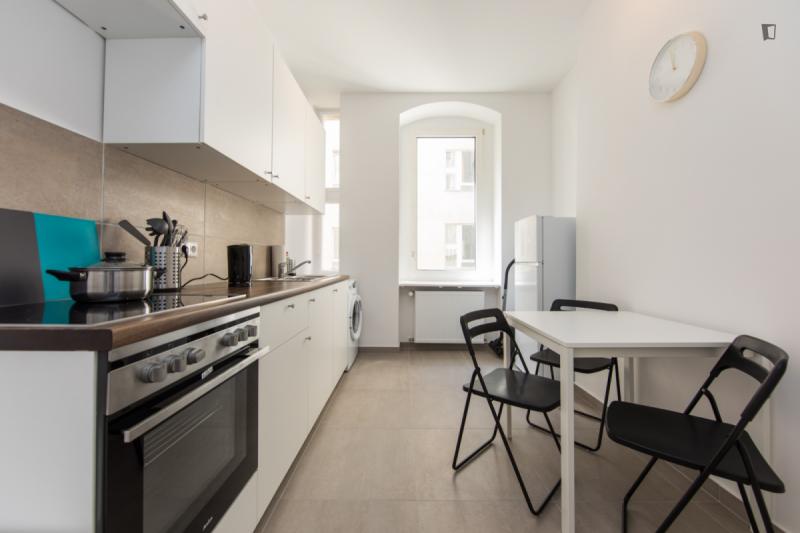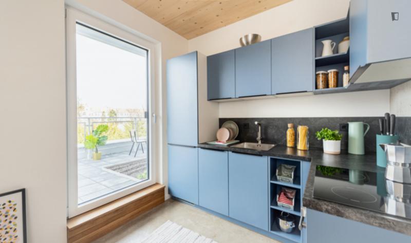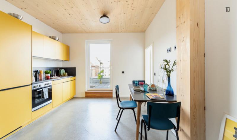Caso esta legislação, que entra em vigor a partir de 1º de dezembro de 2020, ser considerada ilegítima pelo tribunal constitucional federal, a diferença entre a renda no contrato e a renda ajustada sujeita à “renda” deve ser devolvida imediatamente. Portanto, tanto o senhorio quanto os escritórios oficiais da legislação solicitam que você reserve a diferença no aluguel contratual e ajustado, a fim de ser capaz de cobrir possíveis reembolsos. O proprietário exigirá todos os reembolsos abertos, se a qualquer momento a lei for anunciada como ilegítima. Por favor, note que você tem que ter entre 18 e 35 anos de idade no momento da reserva desta oferta e que o depósito de segurança e a taxa de administração devem ser pagos logo após a sua reserva ter sido aceite e antes do move-in.