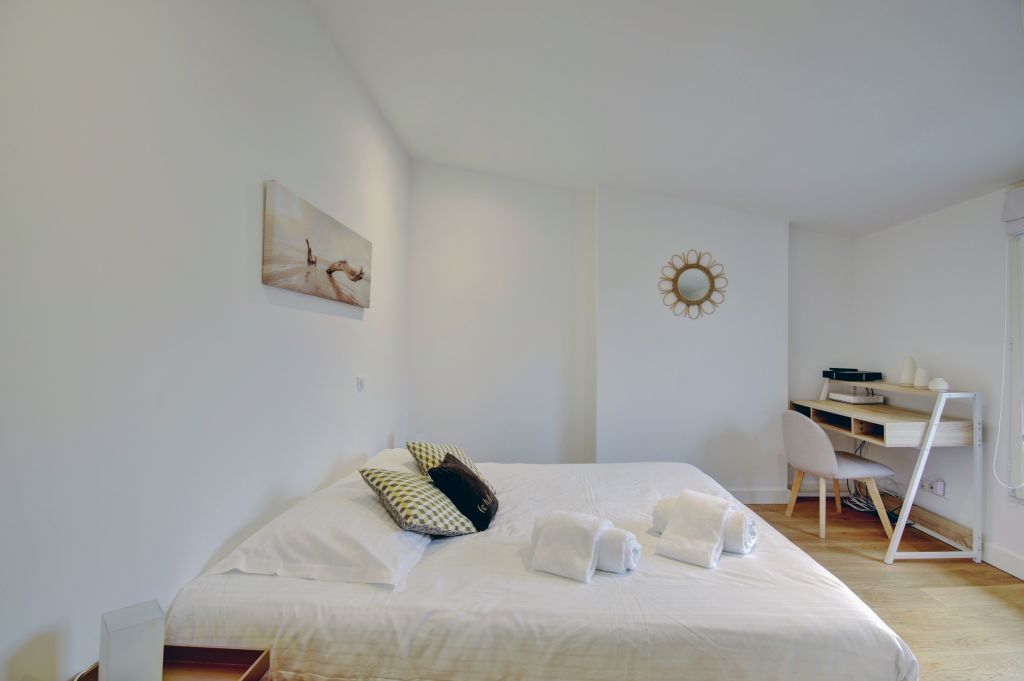 A few steps from the St Michel Basilica and at the foot of the famous Capucins market The hyper-center of Bordeaux is 8 minutes on foot, as well as the heart of the Saint-Michel district, all the restaurants, cafes, shops, etc.The apartment is also close to all the other districts of the historic center (Saint-Pierre, Sainte-Colombe, Saint-Michel and Sainte-Croix).Public transport:Tramway B (“Victoire” stop) 4 min walk takes you 5 min to Place du Grand Théatre (hyper center) and direct to the Cité du vin in 15 minDifferent busesTrain: Bordeaux train station is a 10-minute walk awayCar :The Capucins pay car park is 20 meters away.It is also possible to park in the street but places are popular and the streets pay (except at night between 7 p.m. and 9 a.m., Sundays and public holidays).Self-service bicycle:Vcub station at 100m € 1.60 for 24 hours.Airplane :From the airport, take bus line 1+ to the “Lycées de Mérignac” stop, then take tram A (same ticket) towards Bordeaux city center. Get off at the “Bourgogne” stop (250 m from the apartment). Allow between 45 minutes and 1 hour door to door. Total cost: € 1.60 / person.