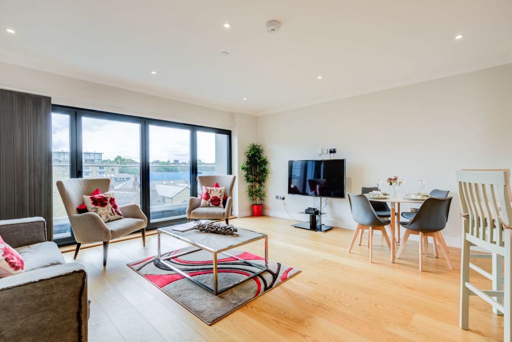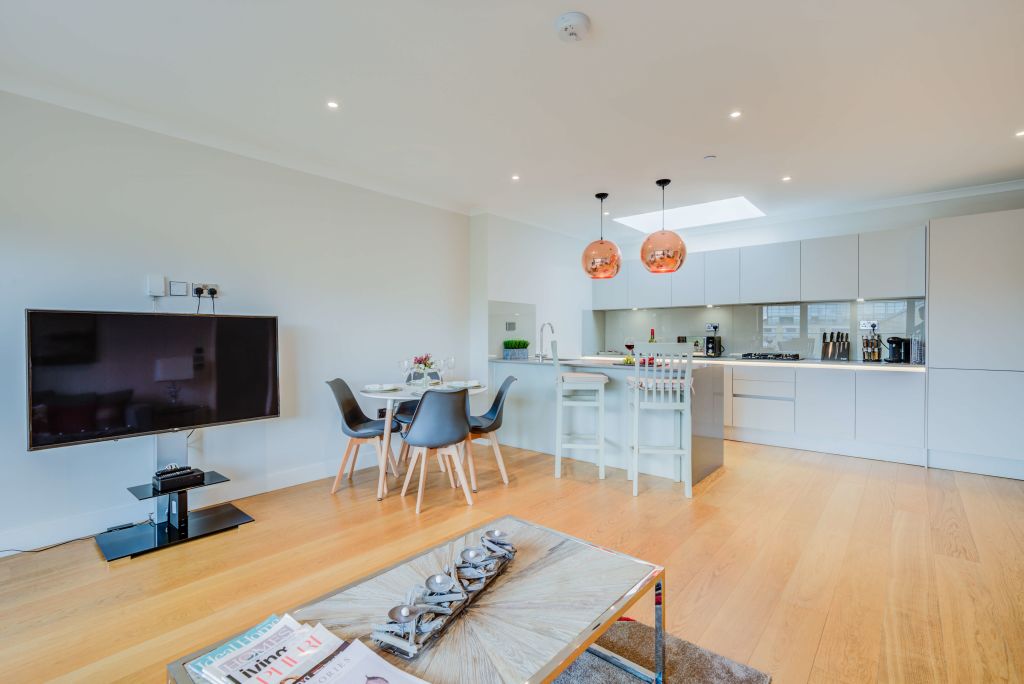 Spacious luxurious 2 bedrooms 2 bathroom penthouse with parking in Brentford. The apartment is fully serviced, luxurious and elegant and modern with fantastic views of the London skyline. Ideal for couples, individuals, business travellers, and families.The apartment comes with a balcony has a fully equipped separate kitchen.This beautiful apartment offers everything you need for a great stay! Notice: Displayed prices and data are not final, and should be used for informative purpose only. They are not contractual or binding. Energy pass This building is not subject to EnEV.This two bedroom apartment is perfectly located and offers stylish and smart serviced accommodation in west London only a short walk from the trendy areas of Kew and Chiswick.The biggest tourist draw in the nearby area is Kew Gardens – a huge expanse of botanical gardens that is additionally home to a large number of recognizable landmarks and attractions. Brentford train station is desirably close by, providing a quick and easy route into central areas of London.