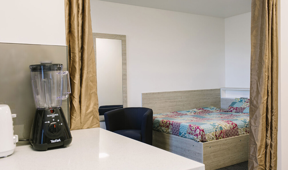 It offers modern en-suite rooms in shared apartment and studio categories. Each accommodation is stacked with a range of amenities, making students feel at home. These amenities include free wifi, kitchenette, study area, wardrobe, lounge area, gaming room, community area, and so much more. The accommodation is curated with expertise for a comfortable and economical stay.