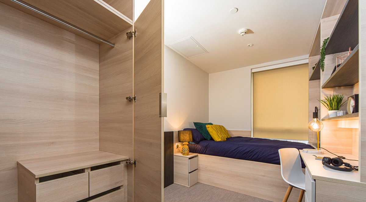 It offers modern en-suite rooms in shared apartment and studio categories. Each accommodation is stacked with a range of amenities, making students feel at home. These amenities include free wifi, kitchenette, study area, wardrobe, lounge area, gaming room, community area, and so much more. The accommodation is curated with expertise for a comfortable and economical stay.
