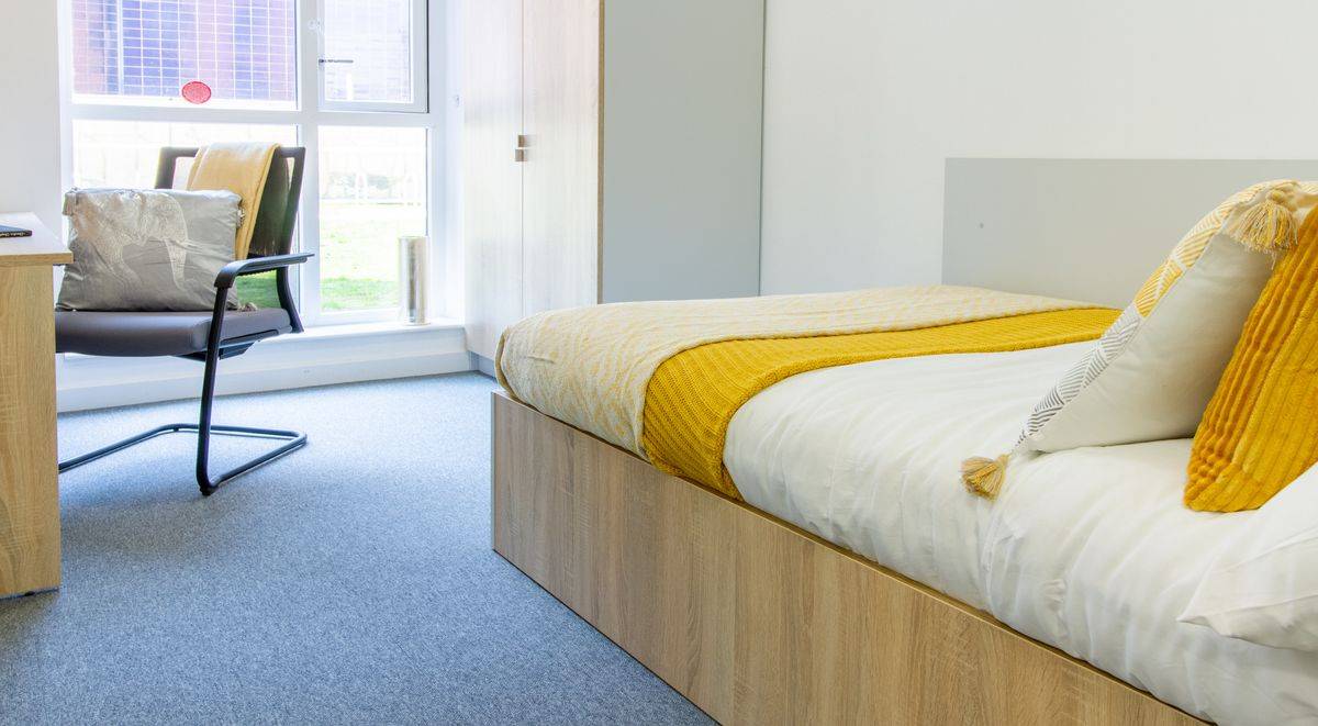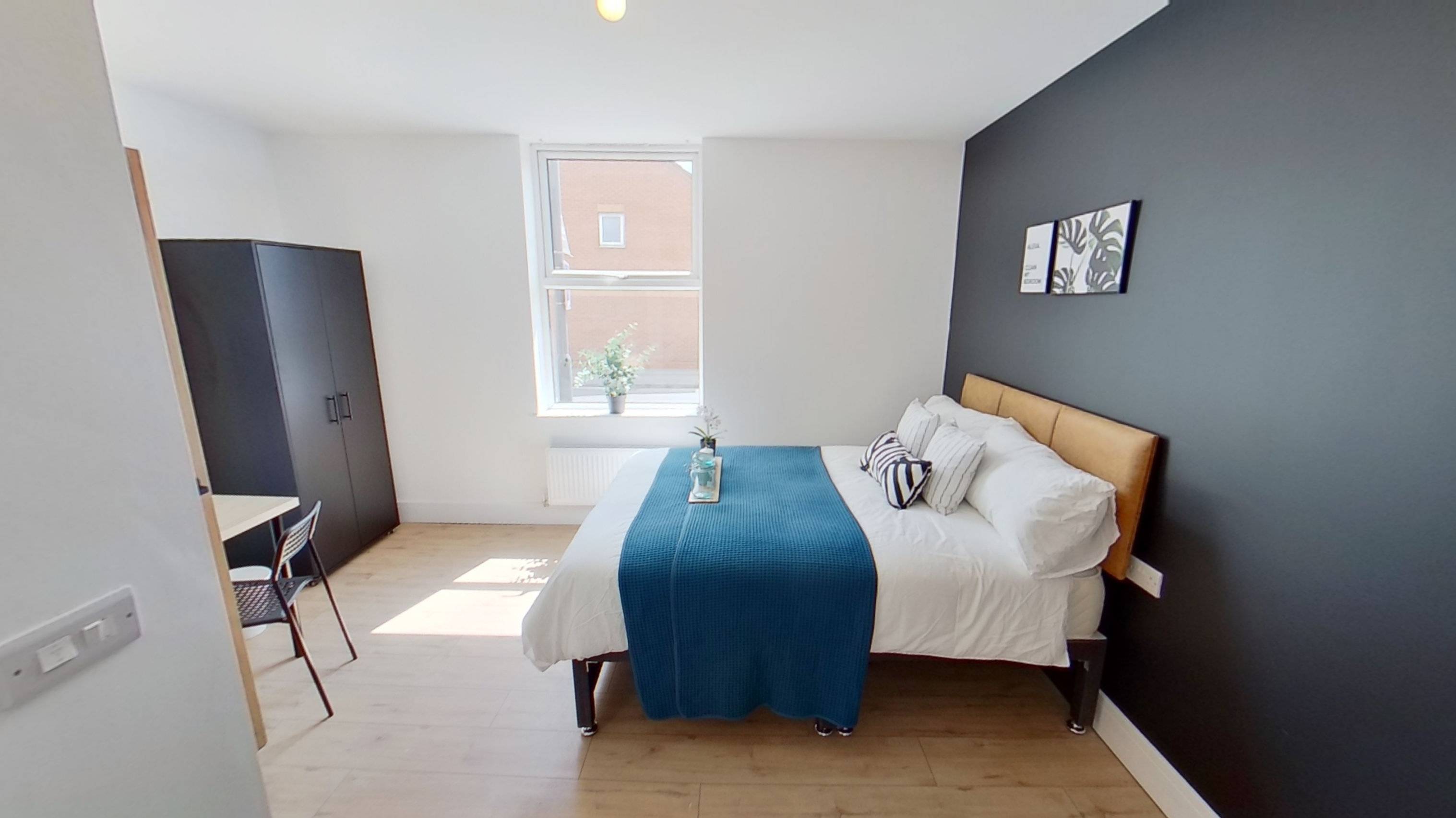 Northgate House is a Derby student accommodation that offers En-suite and Studio rooms. Whatever your choice is, your room will come with a big comfy bed that incorporates a headboard with storage and charging points, as well as a wardrobe, shelving, and a desk with drawers. Your room at Northgate House will also come with a private bathroom with WC, shower, sink, and accessories. this Derby student accommodation is CCTV-monitored with a secure key fob. It has free contents insurance, all-inclusive bills, and high-speed Wi-Fi. There is also an on-site team offering help to students 24/7, as well as on-site laundry rooms. With starting range of £140 – £250 / WEEK.