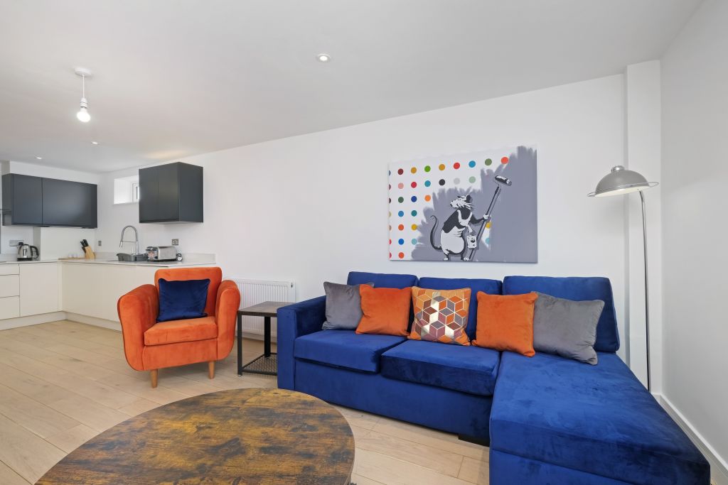Located next door to Egham Station connecting to London waterloo station and very close to the High Street.The Bedroom has a comfortable Kingsize bed. Open plan lounge/dining/kitchen area will guarantee you a pleasant stay. A fully equipped kitchen with Fridge/Freezer, Washer/Dryer, Microwave, Kettle, Toaster etc.Equipped with a Smart TV, Amazon Alexa, fast and free Wi-Fi for you enjoy Netflix and other online services. The location provides easy access to Heathrow, Ascot, Windsor and surrounding areas via the A30, M25, M4 and M3.”