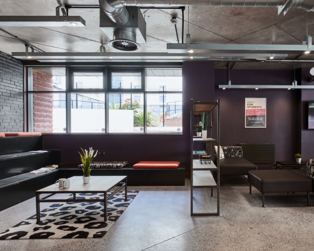 It offers modern en-suite rooms in shared apartment and studio categories. Each accommodation is stacked with a range of amenities, making students feel at home. These amenities include free wifi, kitchenette, study area, wardrobe, lounge area, gaming room, community area, and so much more. The accommodation is curated with expertise for a comfortable and economical stay.