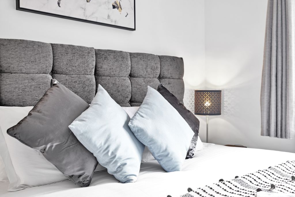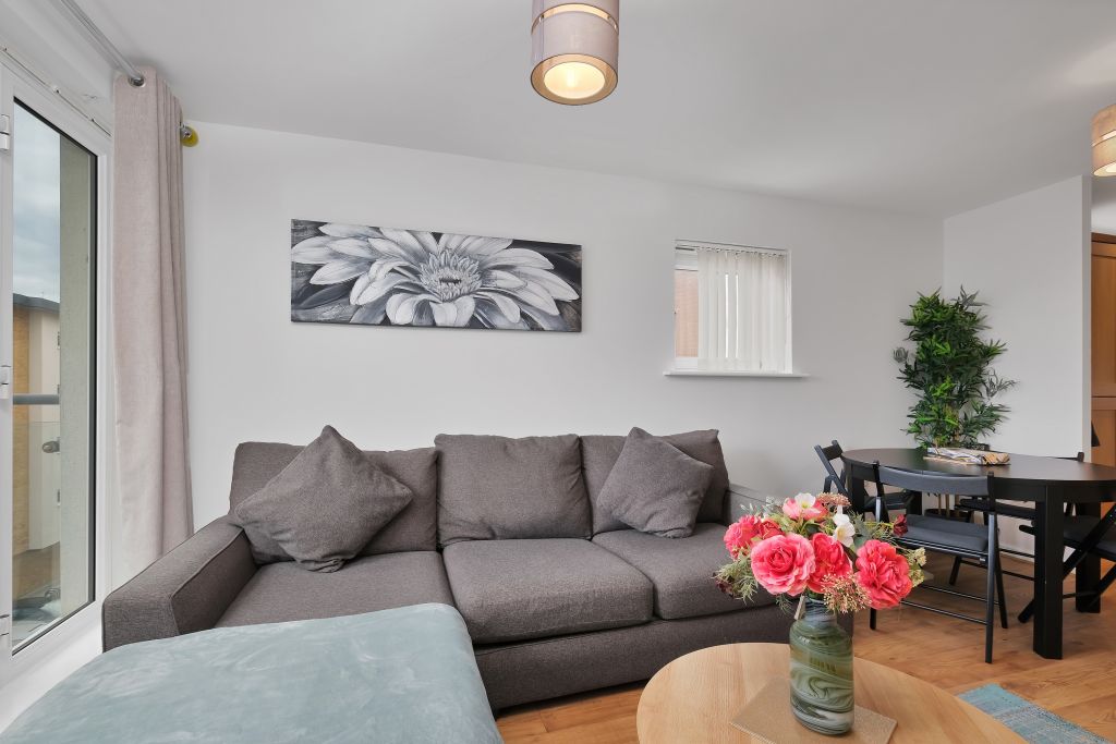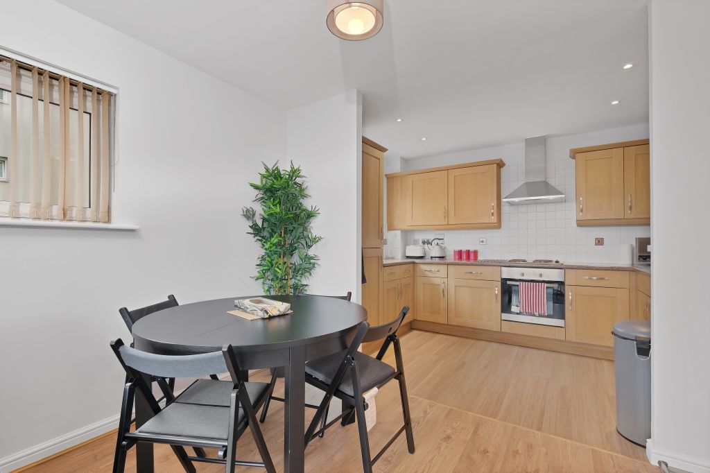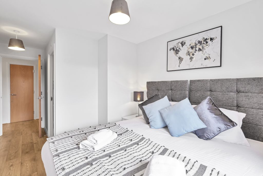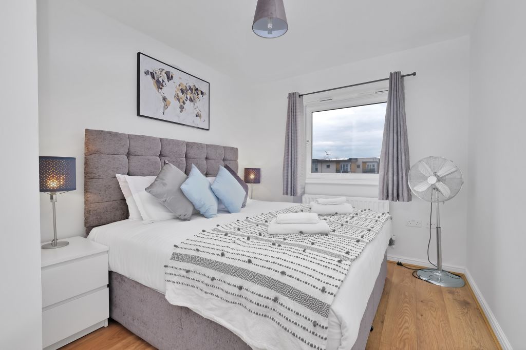 Two bedroom two bathroom apartment with free, secure parking and WiFi. The living room has comfortable seating including a sofa bed, plus a dining area with table and chairs. We provide a Smart TV with internet connection so you can log into your Netflix or other services.The kitchen is of course fully equipped including Fridge/Freezer, Washer, Microwave, Kettle, Toaster, etc as well as utensils, crockery etc.For sleeping, the main bedroom has a super king-size bed plus wardrobes and bedside table etc. The second bedroom has a 2 single beds and wardrobe and bedside tables. The bathroom comprises shower over bath with sink and toilet.Parking for cars and small vans is within the grounds. Located across the road from the Galleria shopping centre with lots of shops, restaurants and coffee shops. The locations also provides easy access to the M25 and the M1 motorways.”
