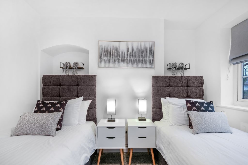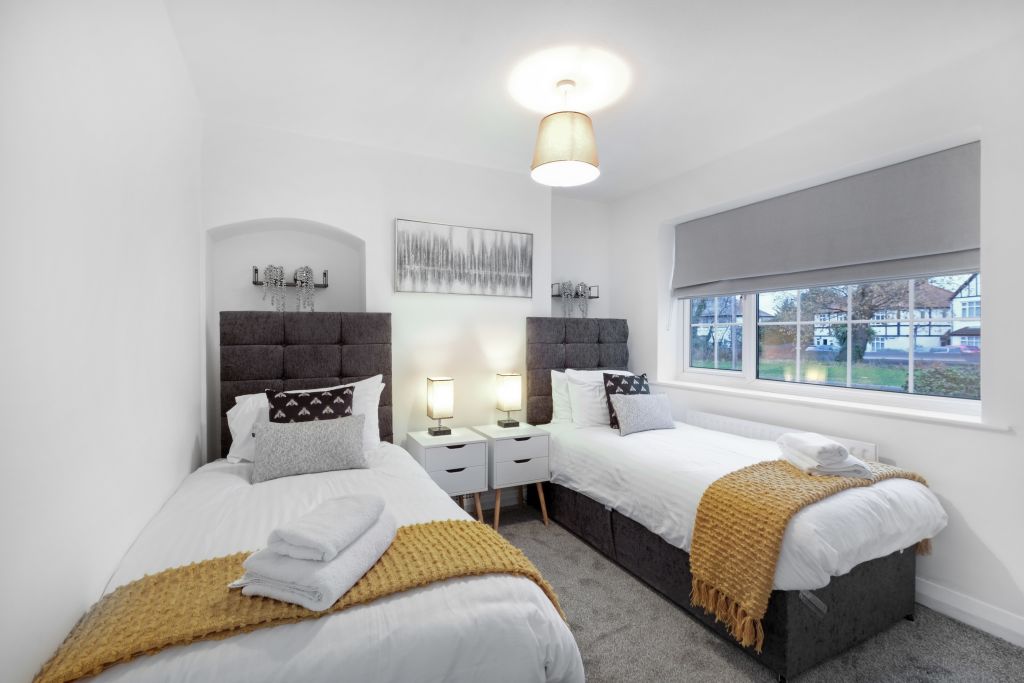 Bright 4 Bedroom 2 Bath serviced house ideal for Pinewood Studios in Iver. Newly refurbished well equipped and laid out, the house has 4 bedrooms and 2 bathrooms across 2 floors of this detached property. For greatest flexibility, 1 downstairs bedroom is laid out with 2 x single beds for easy access for someone that would struggle with climbing stairs. The remaining 3 bedrooms are located on the 2nd floor, 2 are laid out with super king size beds and 1 bedroom with a single bed. The house has a downstairs bathroom with wet room & WC, and an upstairs family bathroom with a bath and a shower over the bath. The overall design of the property, along with our décor, provides a light and spacious feel that is comfortable and uncluttered. There is a fully equipped kitchen dining area complete with dishwasher, washing machine with and a separate tumble dryer, and all the other essentials, cookware and crockery you would expect. The lounge provides a comfortable heart of the property, complete with Smart TV, and 2 X leather sofas and a double patio door to the pergola and the garden. There is good quality free Wi-Fi throughout the house. Also off-street parking for up to 3 vehicles on the drive and on-street parking is allowed. Notice: Displayed prices and data are not final, and should be used for informative purpose only. They are not contractual or binding. Energy pass This building is not subject to EnEV.