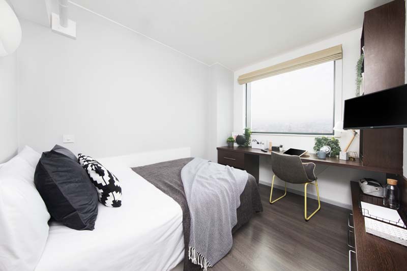 It offers modern en-suite rooms in shared apartment and studio categories. Each accommodation is stacked with a range of amenities, making students feel at home. These amenities include free wifi, kitchenette, study area, wardrobe, lounge area, gaming room, community area, and so much more. The accommodation is curated with expertise for a comfortable and economical stay.