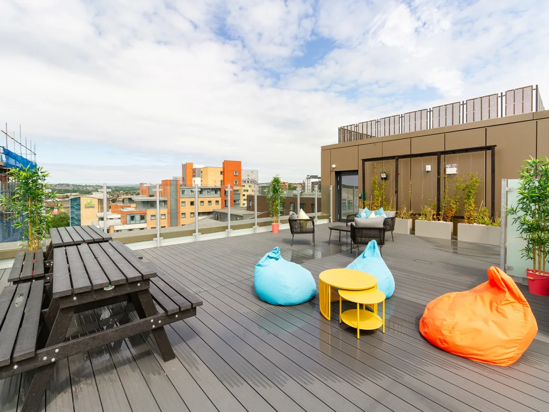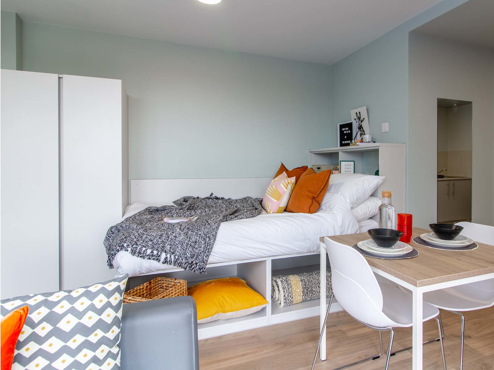 All the studio rooms are fully furnished and feature comfy beds, a living area, mini-kitchen, spacious storage and a workplace. They also provide study rooms to help you study in a quiet space. The lively student accommodation provides year-round social events to keep you hooked. To help you stay fit the place comes with a 24/7 gym with high-tech equipment.