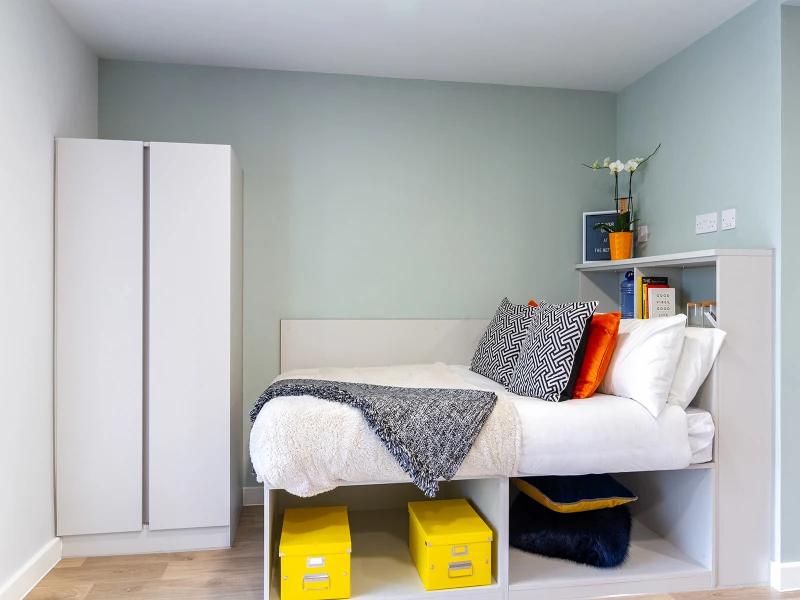 Each studio comes with a small double bed, loads of workspace and storage, a private en-suite with shower and your own private mini-kitchen. The Bronze Studios are located on Ground floor up to the 3rd Floor.