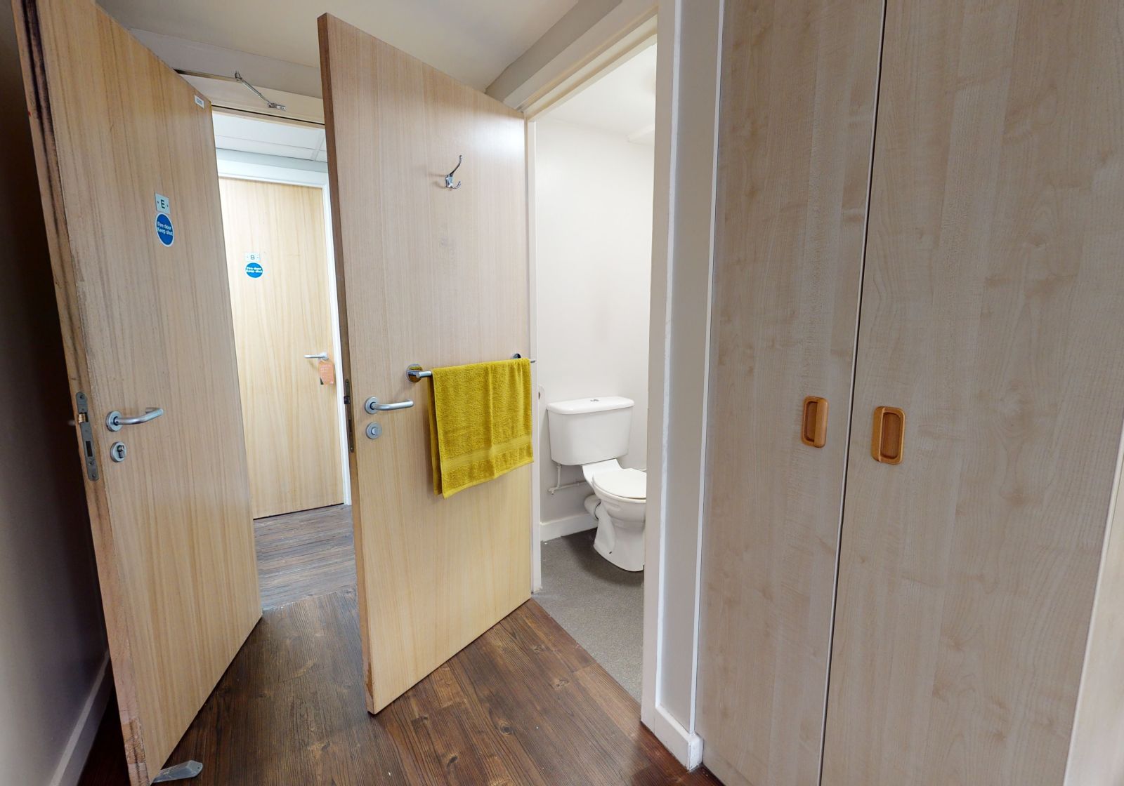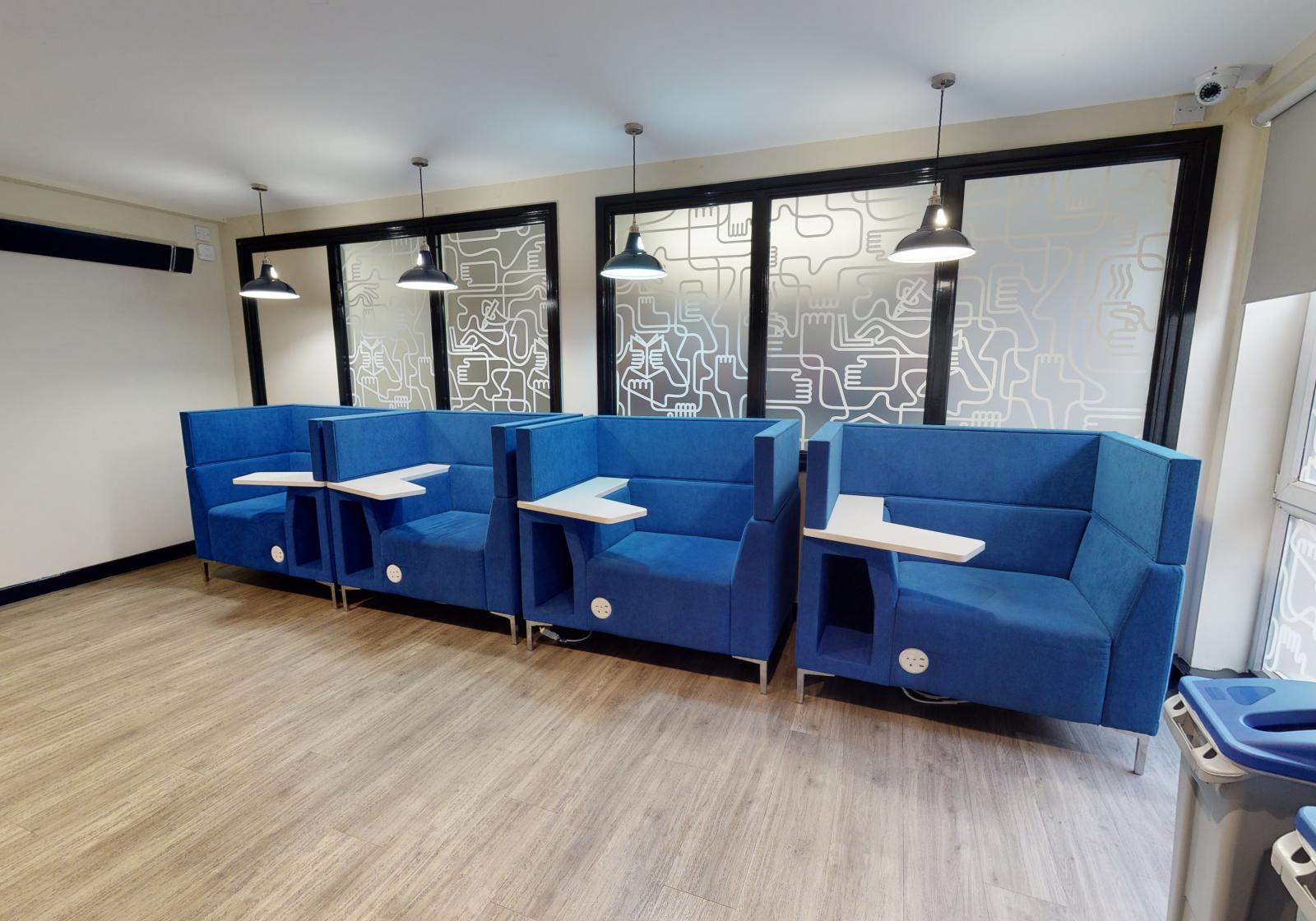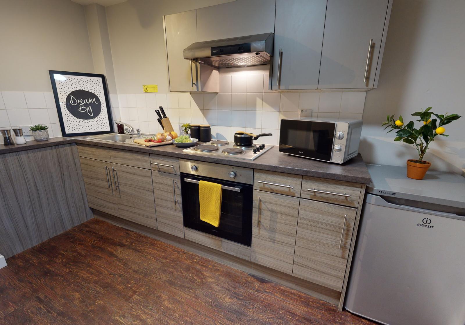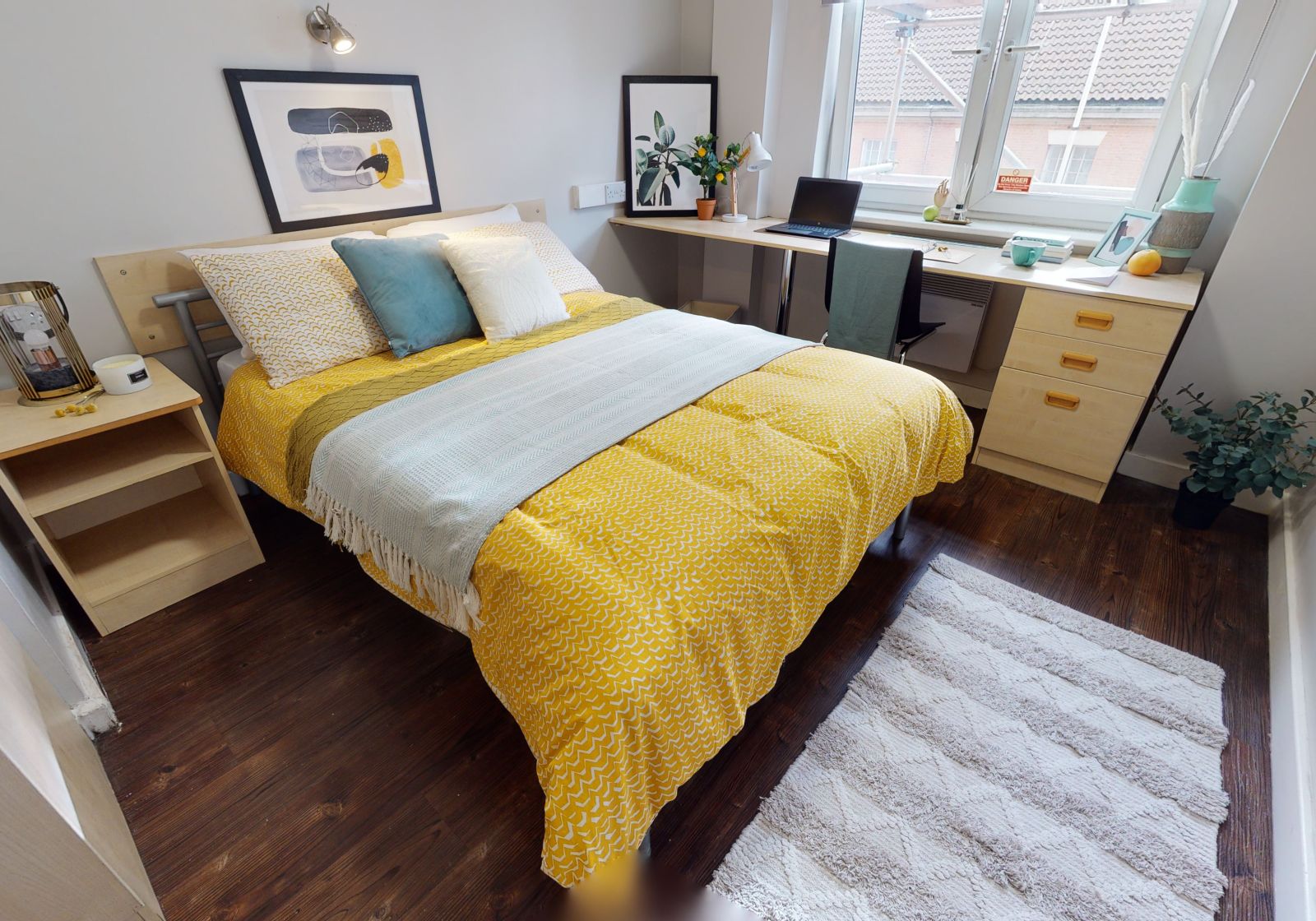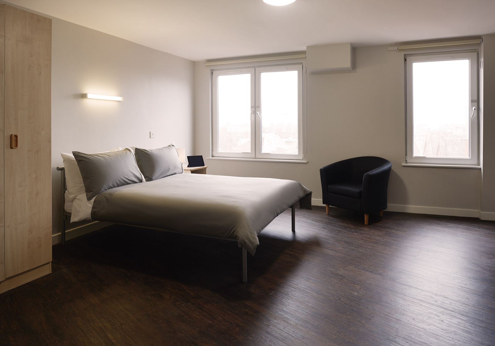 Enjoy your own private bathroom, fully fitted seperate kitchen with hob and combi oven, double bed, large study desk and chair, TV and armchairs. With all the privacy and storage you could want, you’ll also enjoy building features like a games room, outdoor courtyard with decking and seating plus onsite laundry facilities.